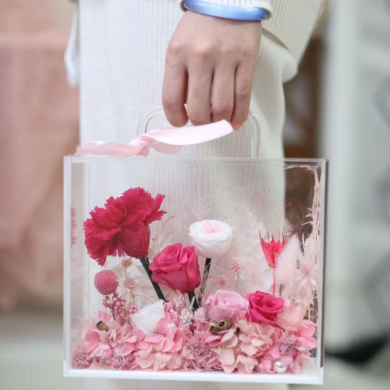 ¥22.00 – ¥28.00手提花盒空盒亚克力轻奢伴手礼七夕情人节礼物生日送女友透明礼盒定制