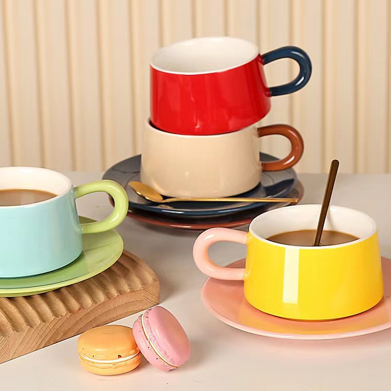 ¥898.50小众复古咖啡杯碟套装创意精致陶瓷拿铁杯下午茶水杯带杯架勺子