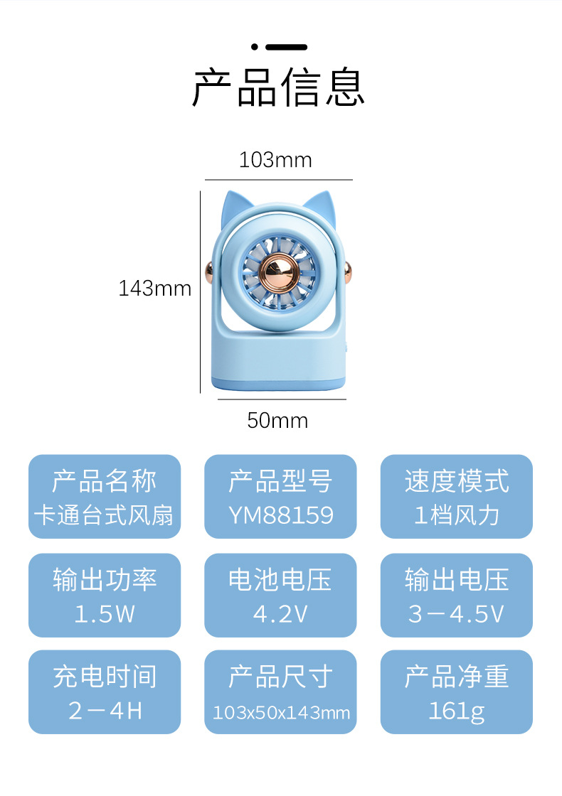 | 颜色 | 88159萌鼠台式风扇太空蓝, 88159萌鼠台式风扇米白色, 88159萌鼠台式风扇粉色, 88159萌鼠台式风扇白色, 88159C萌兔台式风扇蓝色, 88159C萌兔台式风扇米白色, 88159C萌兔台式风扇粉色, 88159C萌兔台式风扇 |