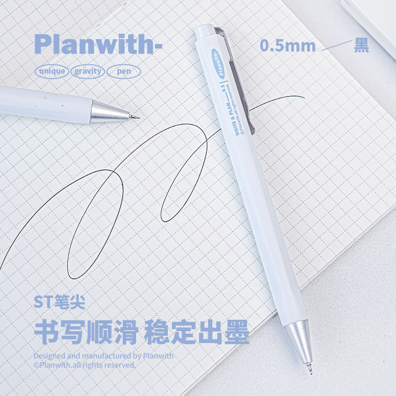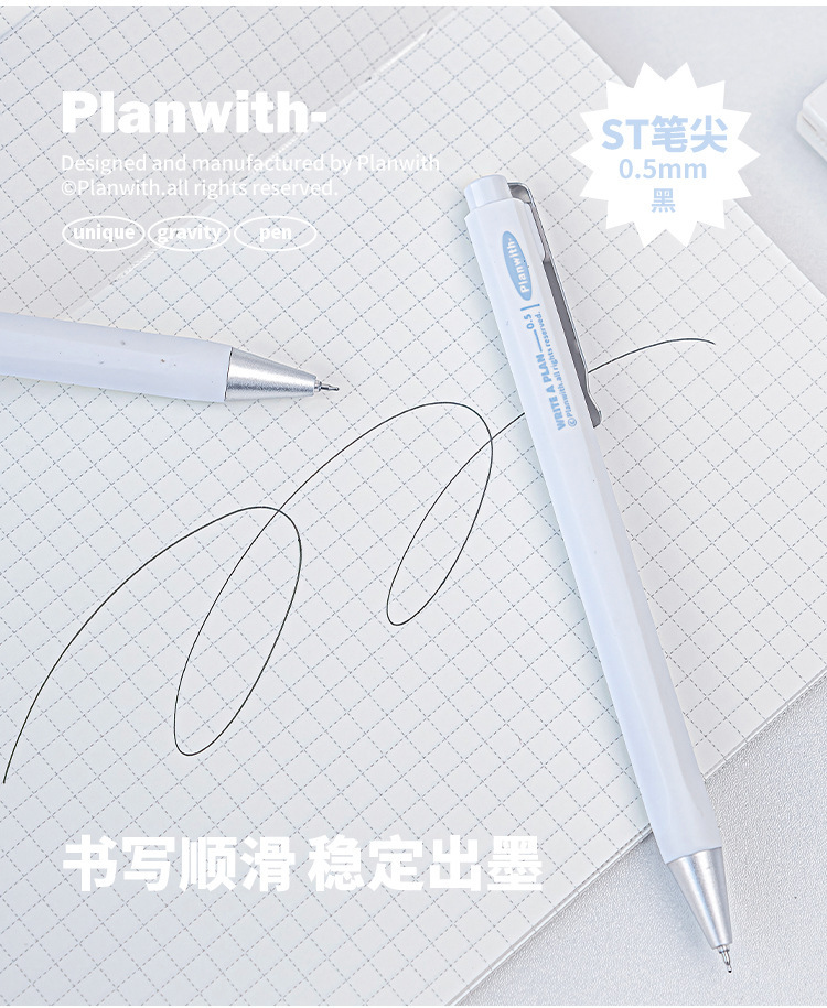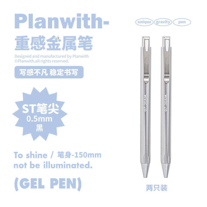 - 重力感金属中性笔 日系简约0.5按动刷题笔ST头黑色签字笔