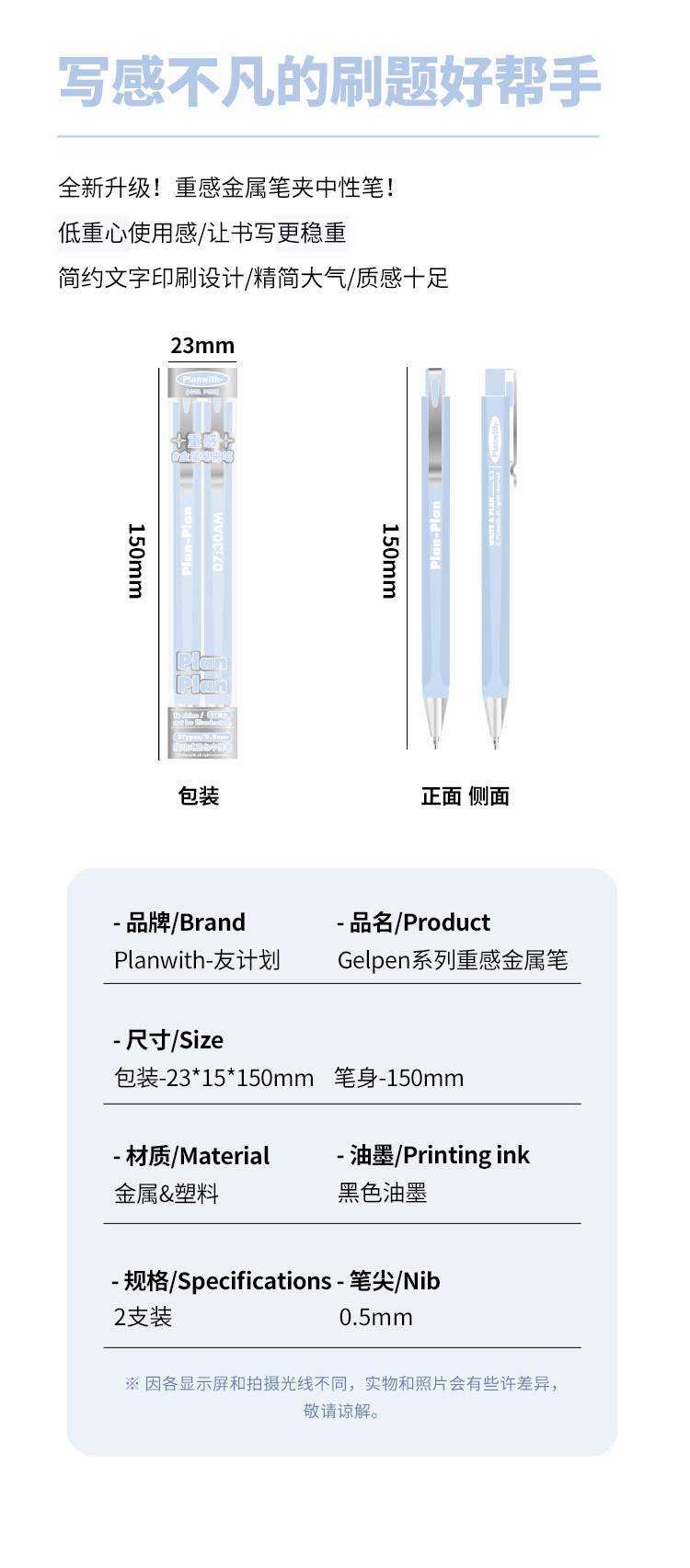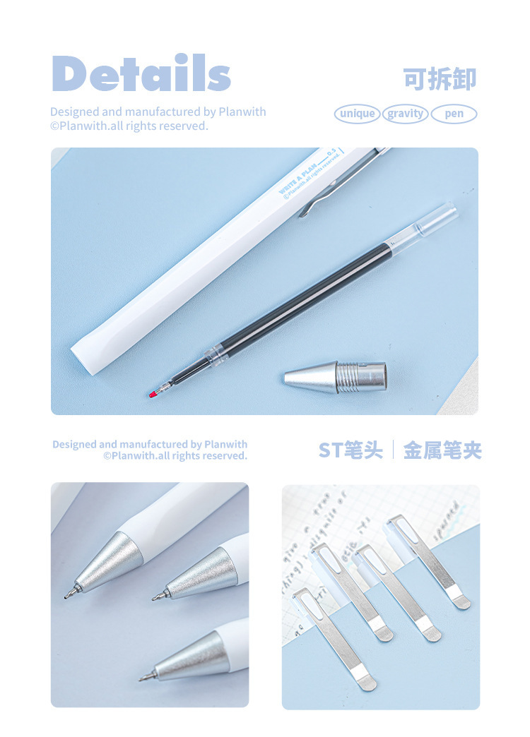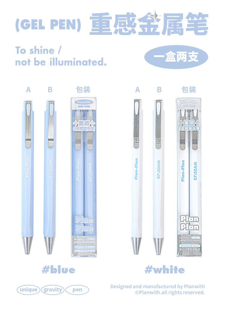 | 笔芯颜色 | blue-2支套装(黑笔), white-2支套装(黑笔), silvery-2支套装(黑笔) |