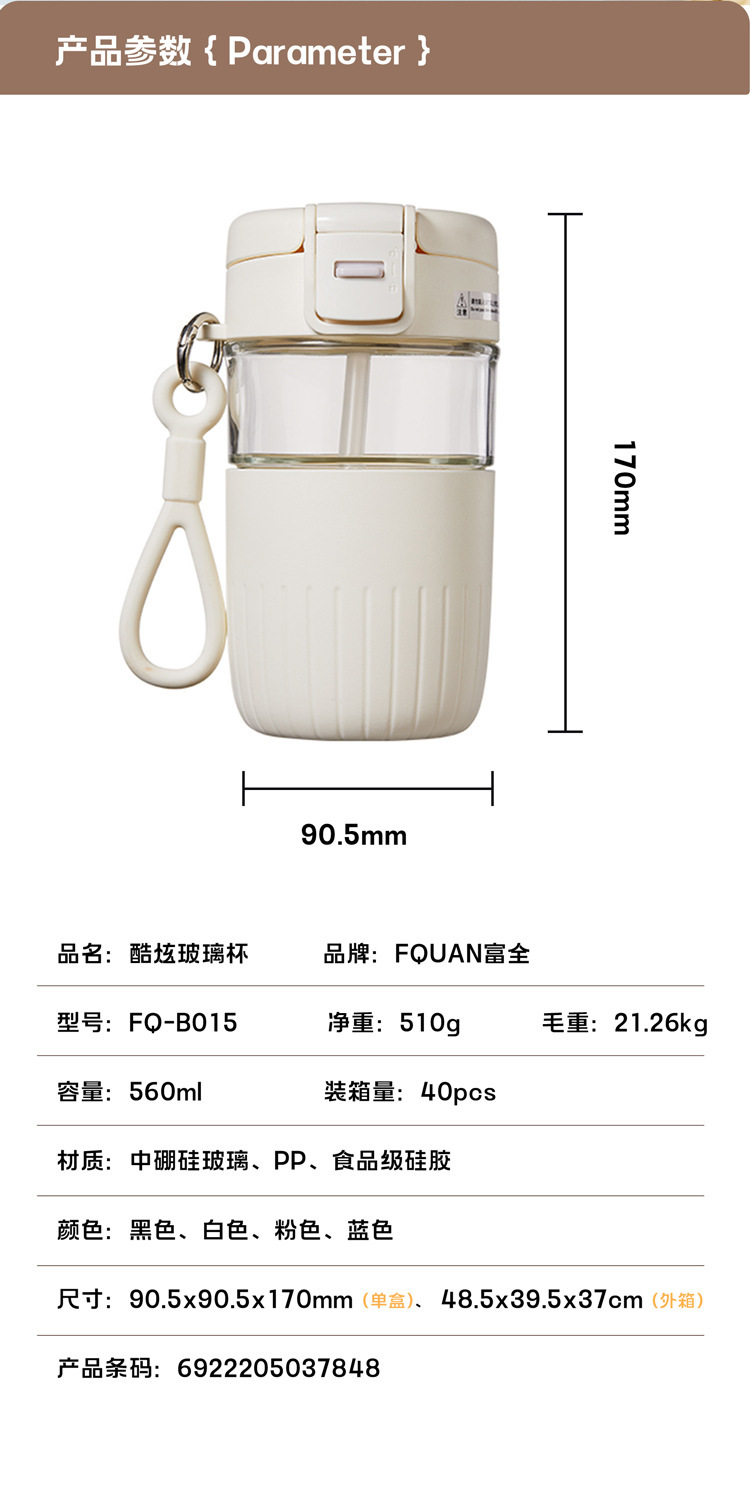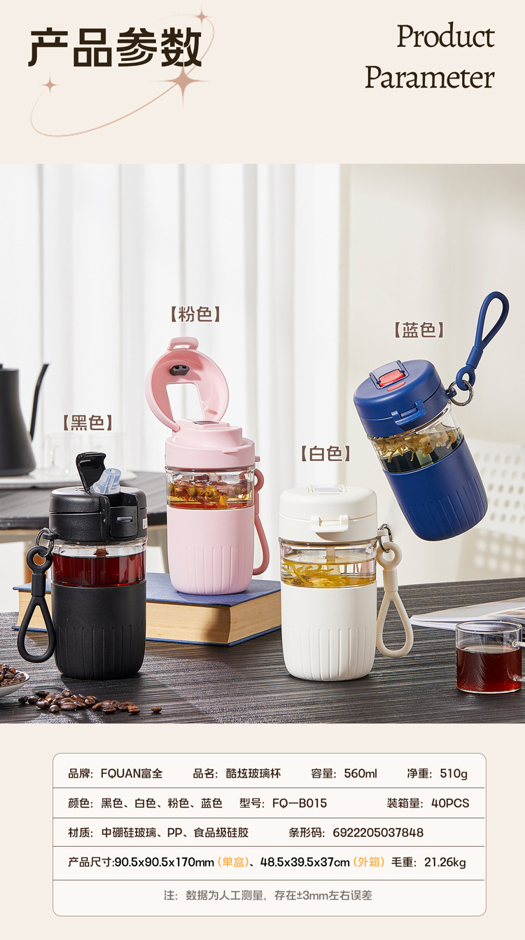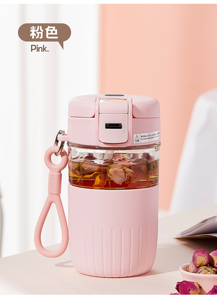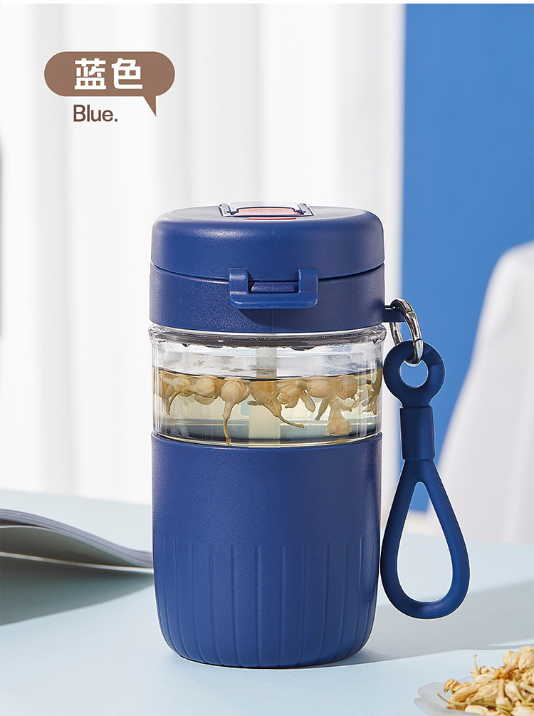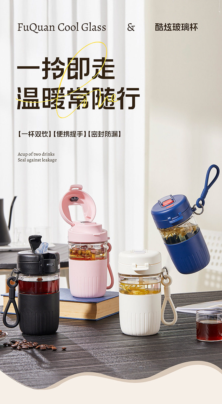 大容量茶水分离玻璃杯家用办公室女生吸管水杯带把手夏季冰霸杯子