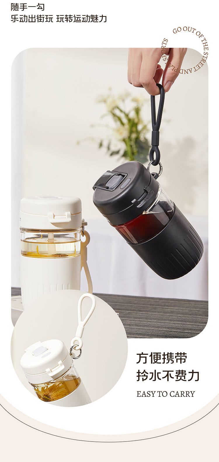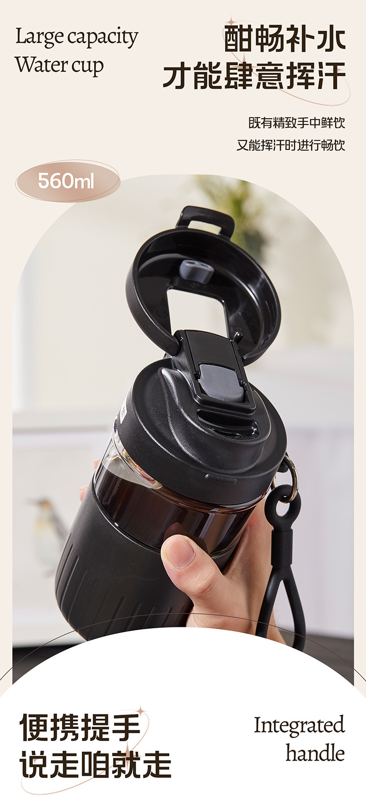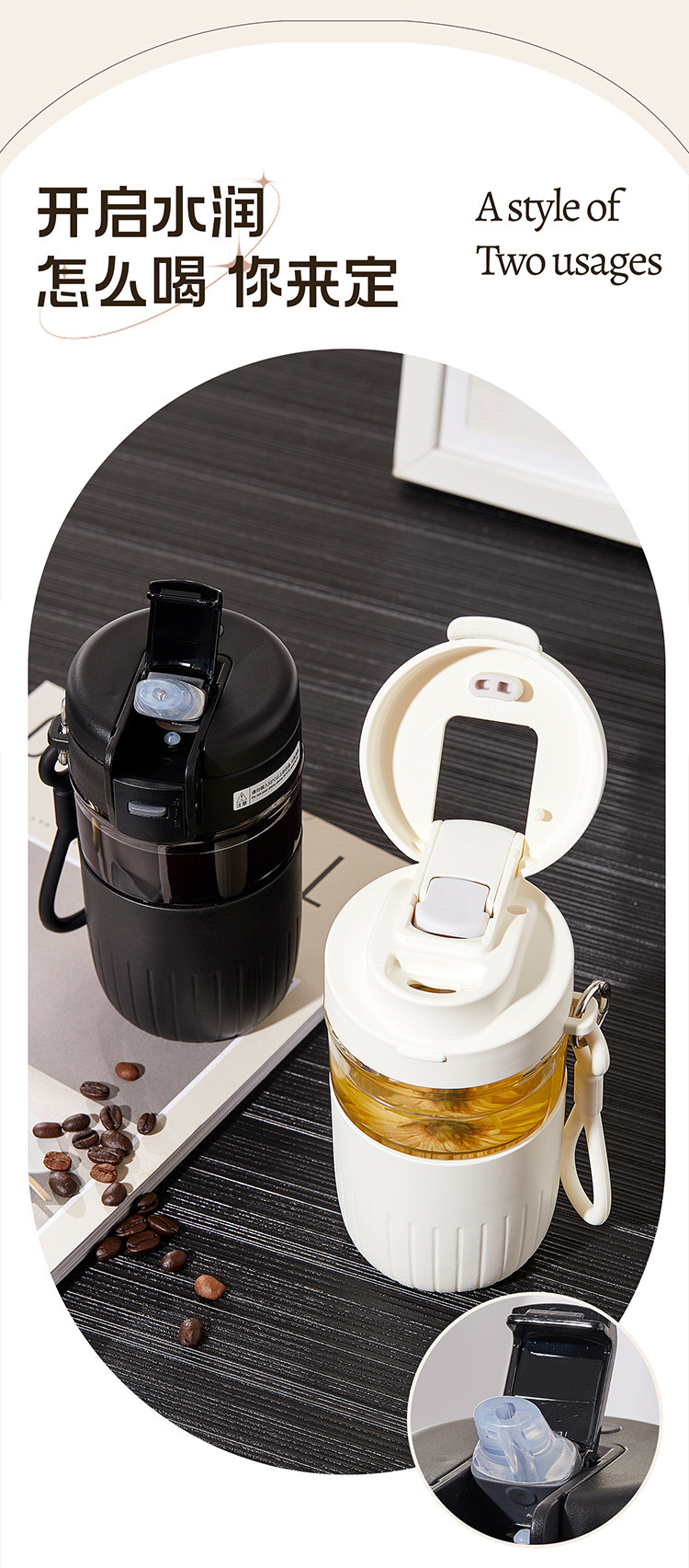 大容量茶水分离玻璃杯家用办公室女生吸管水杯带把手夏季冰霸杯子