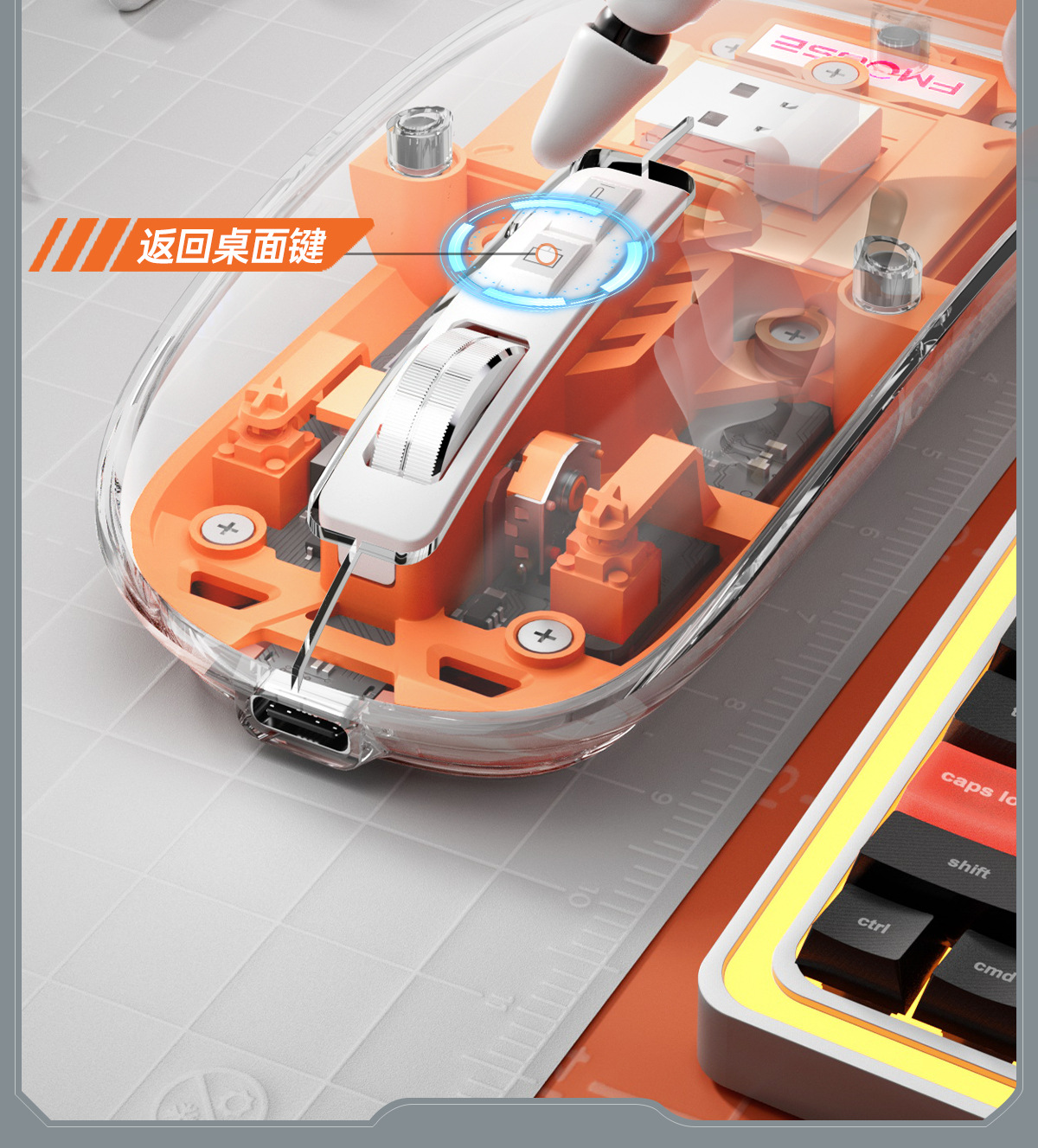 硬盒插座RGB氛围灯65W氮化镓桌面多口充电器排插可视