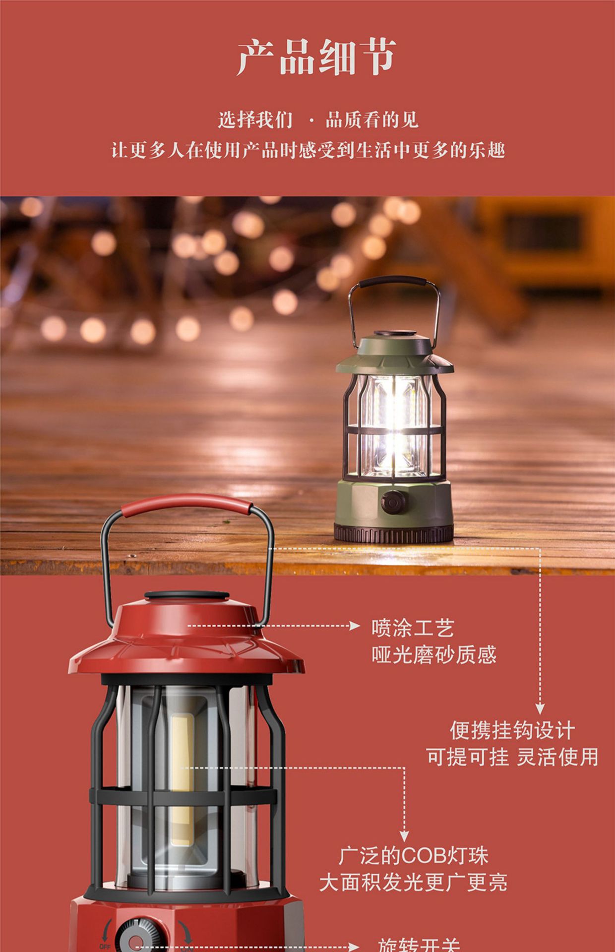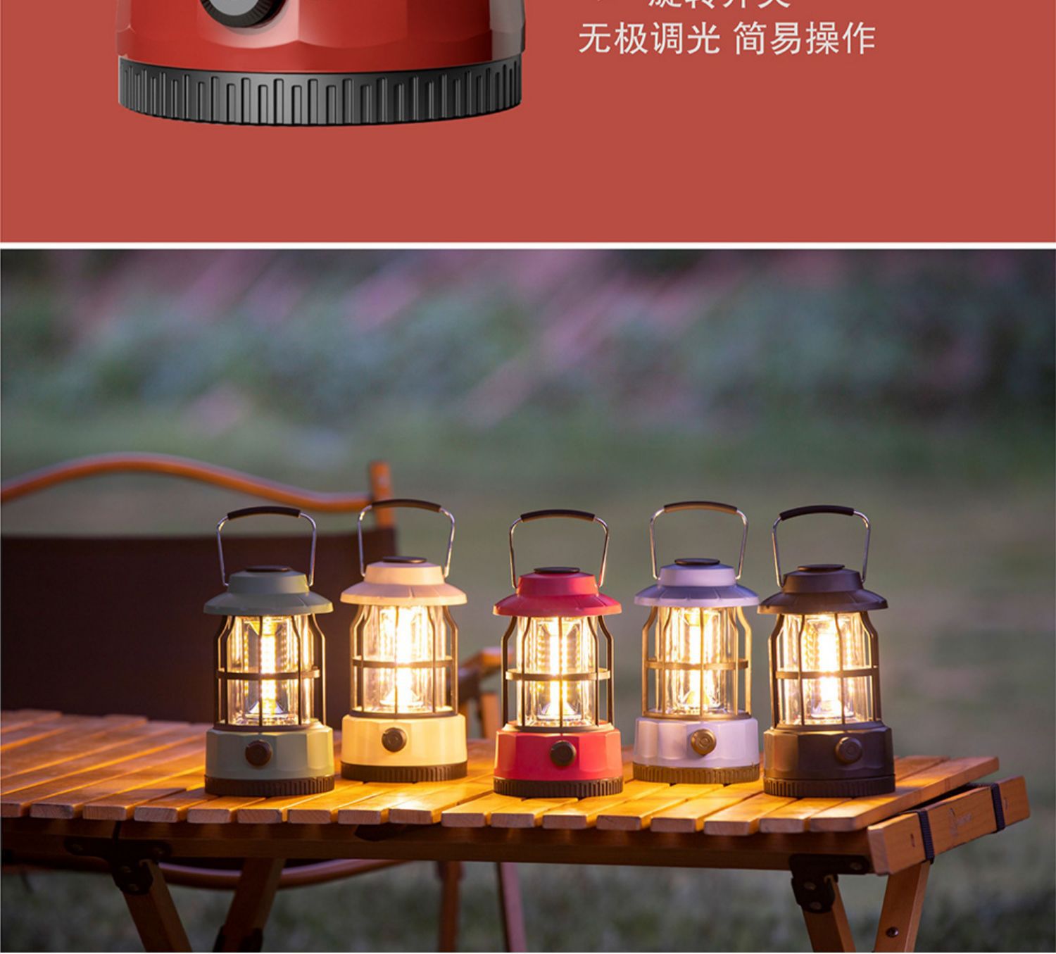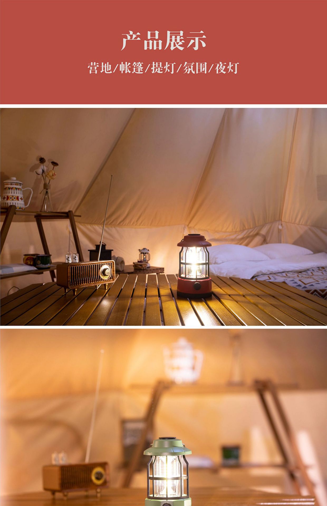 - 户外露营灯照明氛围装饰充电帐篷灯超长续航复古手提灯野营营地灯