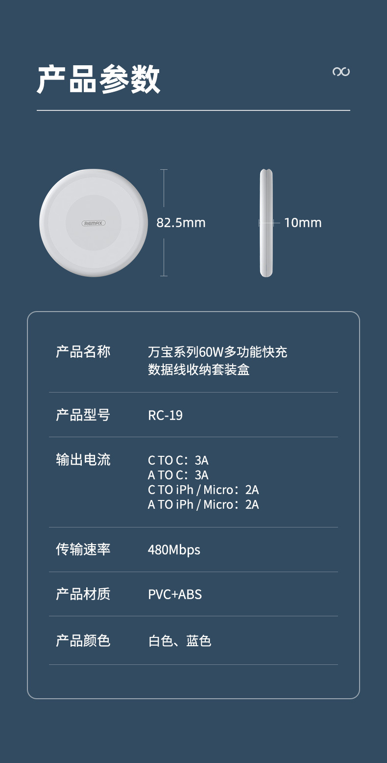 - 60W快充多功能数据线收纳盒手机支架便携收纳套装RC-190