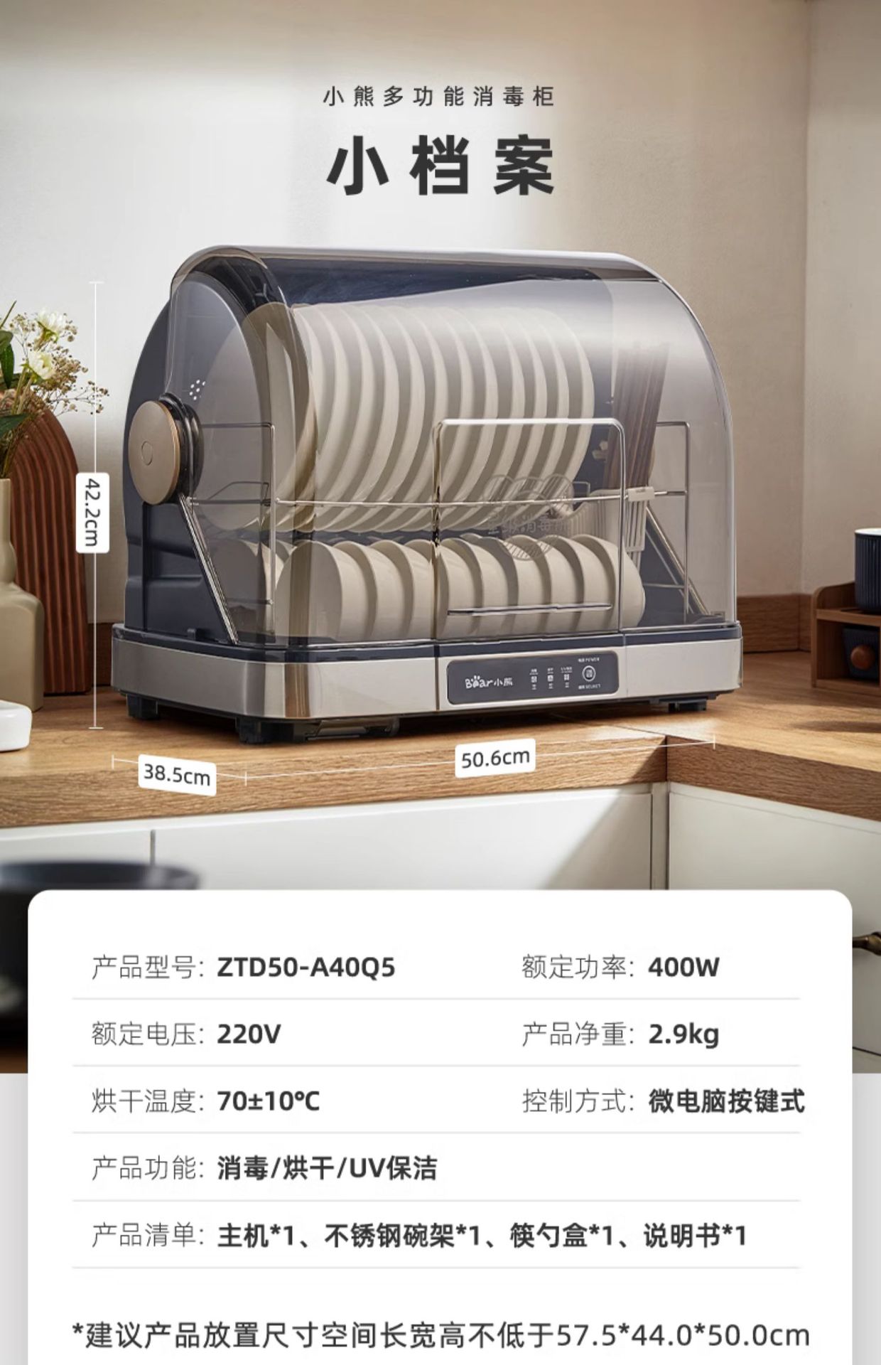 ZTD50-A40Q5消毒柜家用小型紫外线热风烘干收纳柜