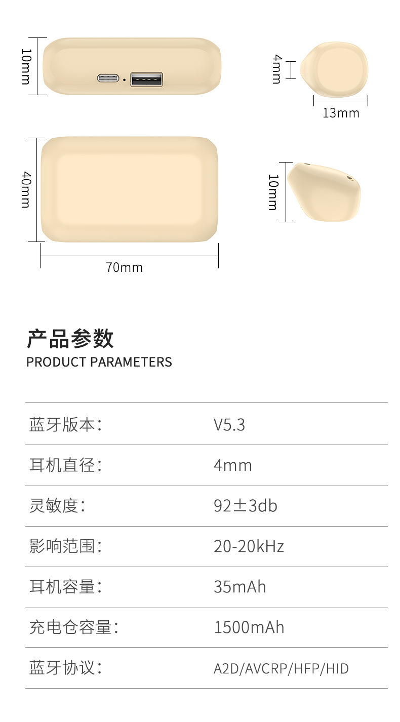 U3 Plus真无线蓝牙耳机降噪半入耳式运动