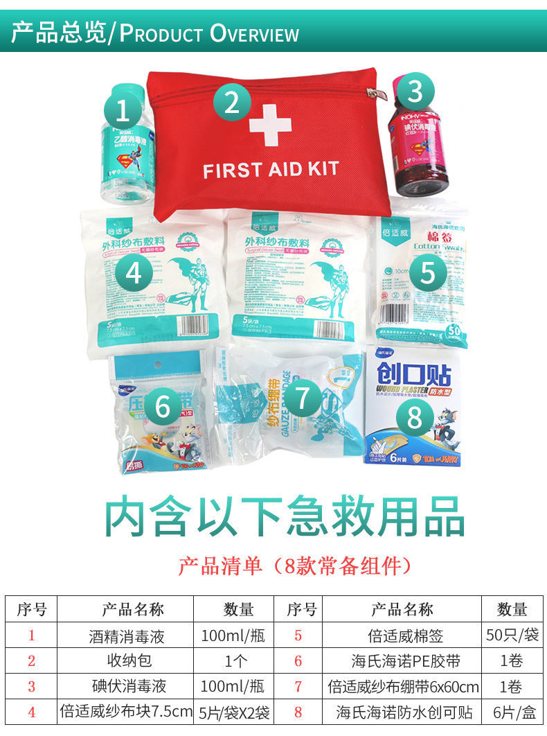 应急急救包套装便携旅行车载户外应急包套装8组件