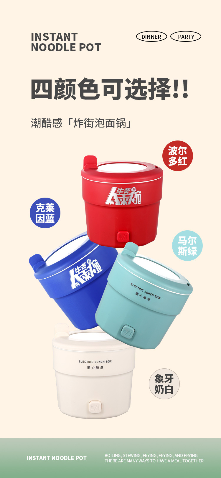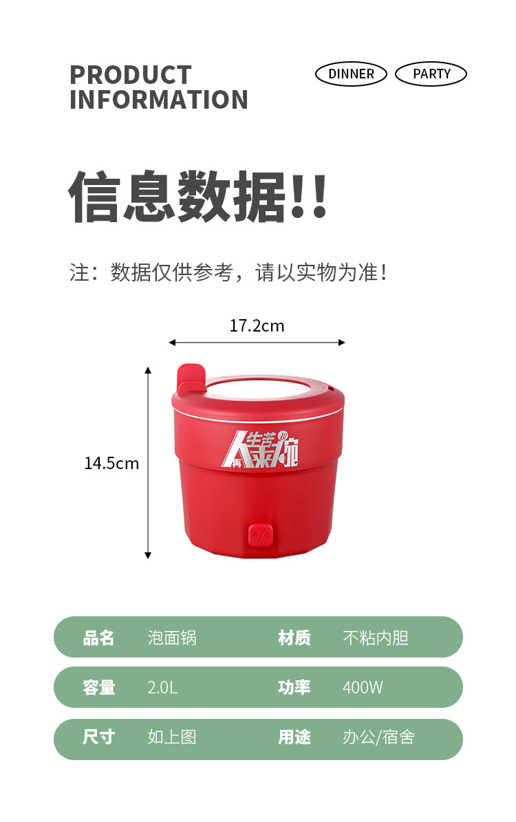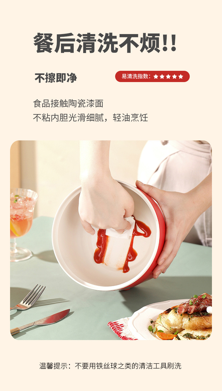 | 颜色 | 紫色-普通款(不粘内胆), 绿色-普通款(不粘内胆), 白色-普通款(不粘内胆), 红色-普通款(不粘内胆), 2L升级款-红色(陶晶内胆), 2L升级款-蓝色(陶晶内胆), 2L升级款-绿色(陶晶内胆), 2L升级款-奶白色(陶晶内胆) |