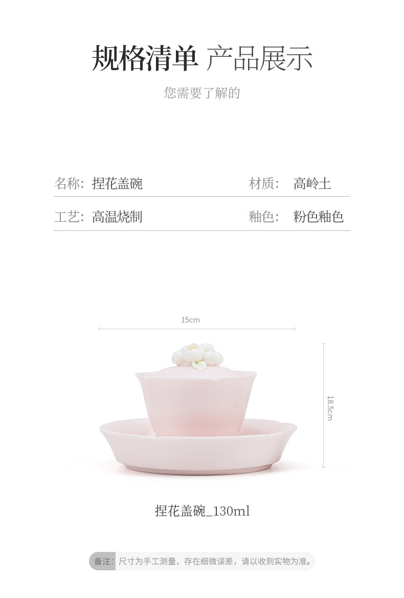| 颜色 | 花语-手工捏花盖碗(粉色) |