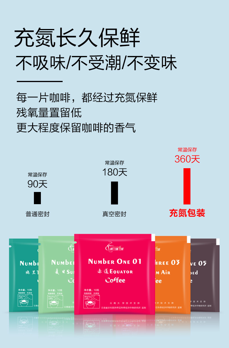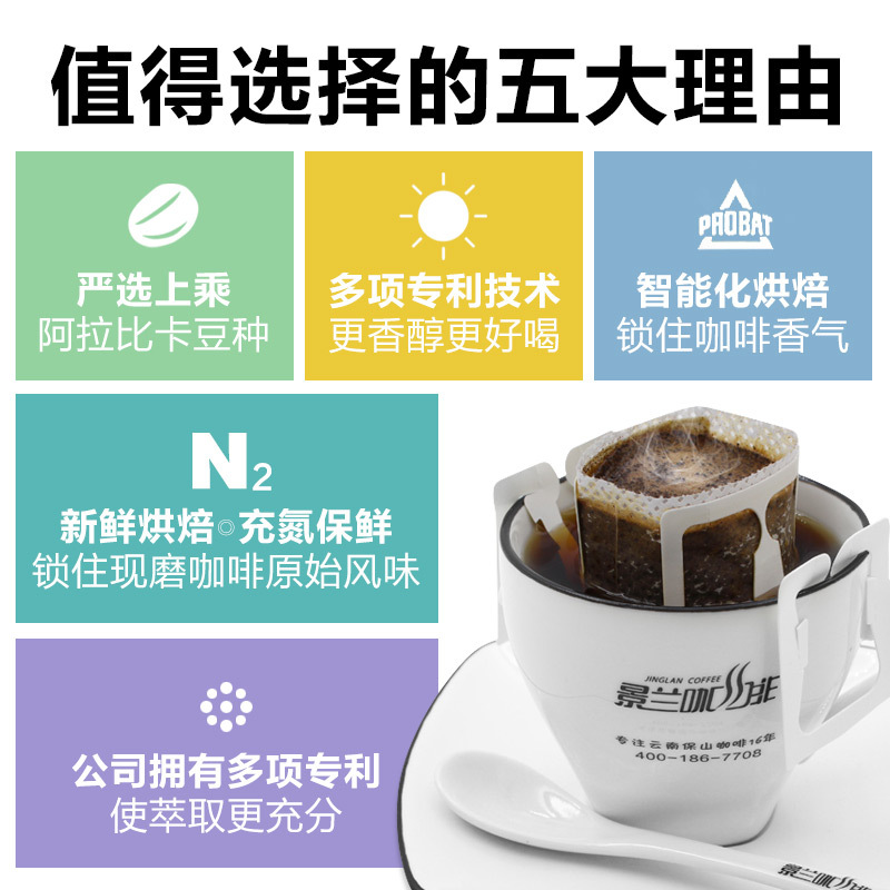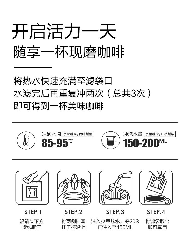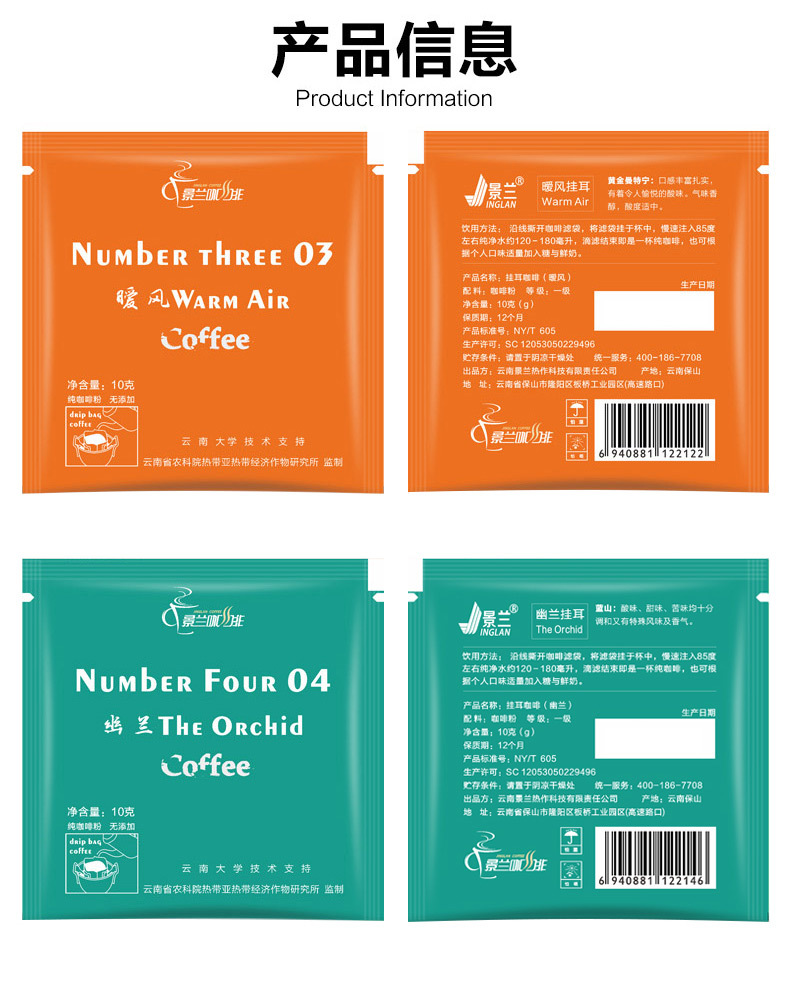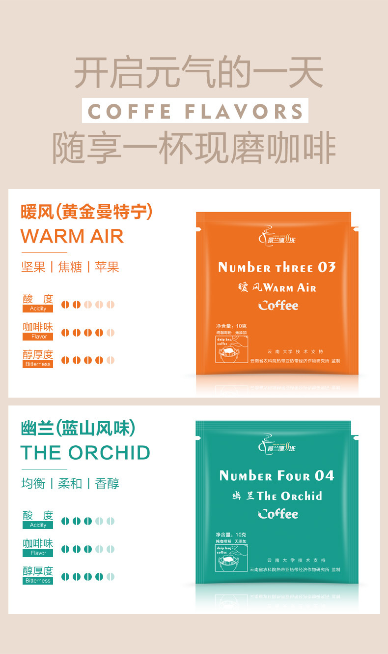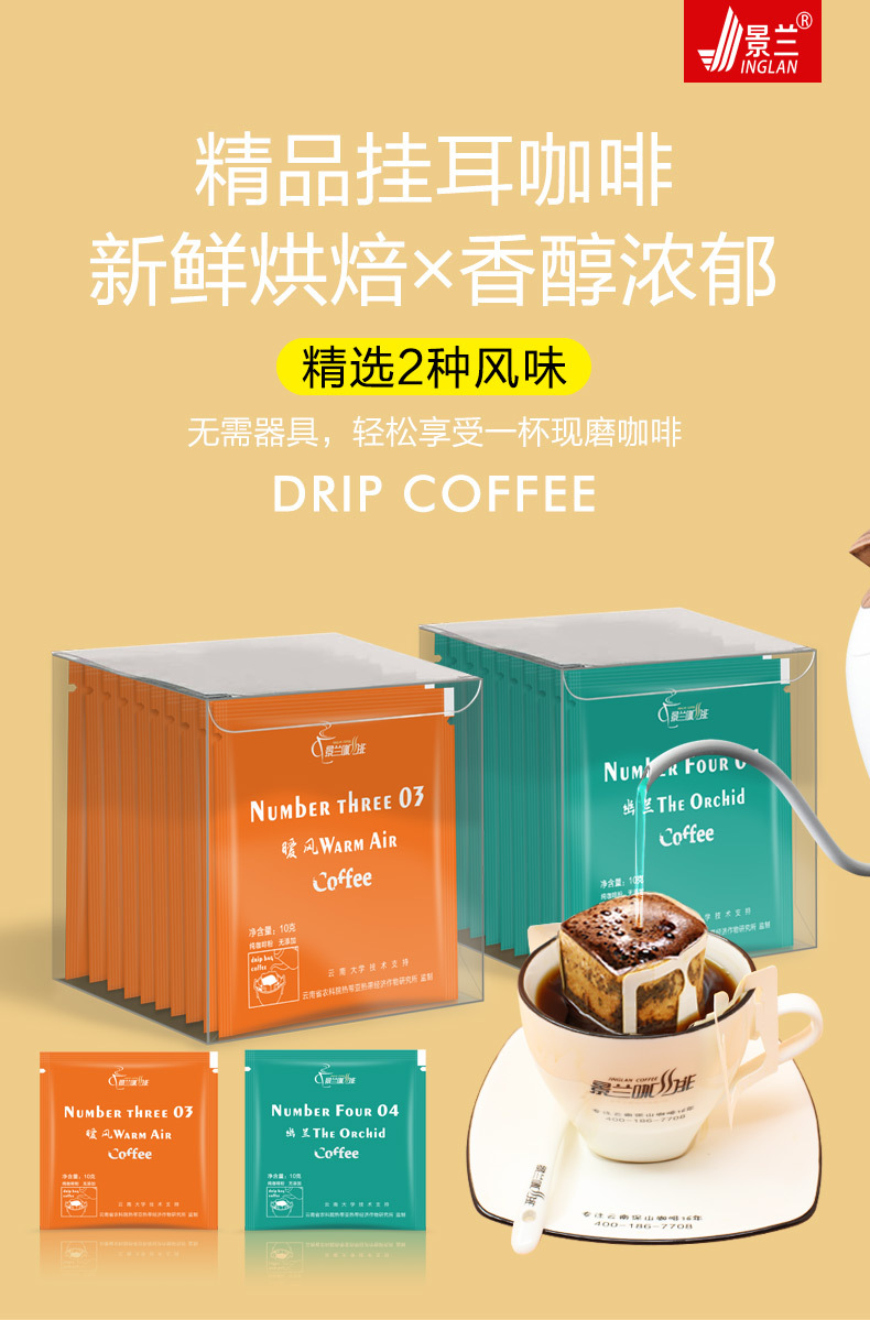 | 包装规格 | 蓝山风味挂耳咖啡10片/盒, 黄金曼特宁风味挂耳咖啡10片/盒, 蓝山5片+黄金曼特宁5片混装挂耳咖啡 |