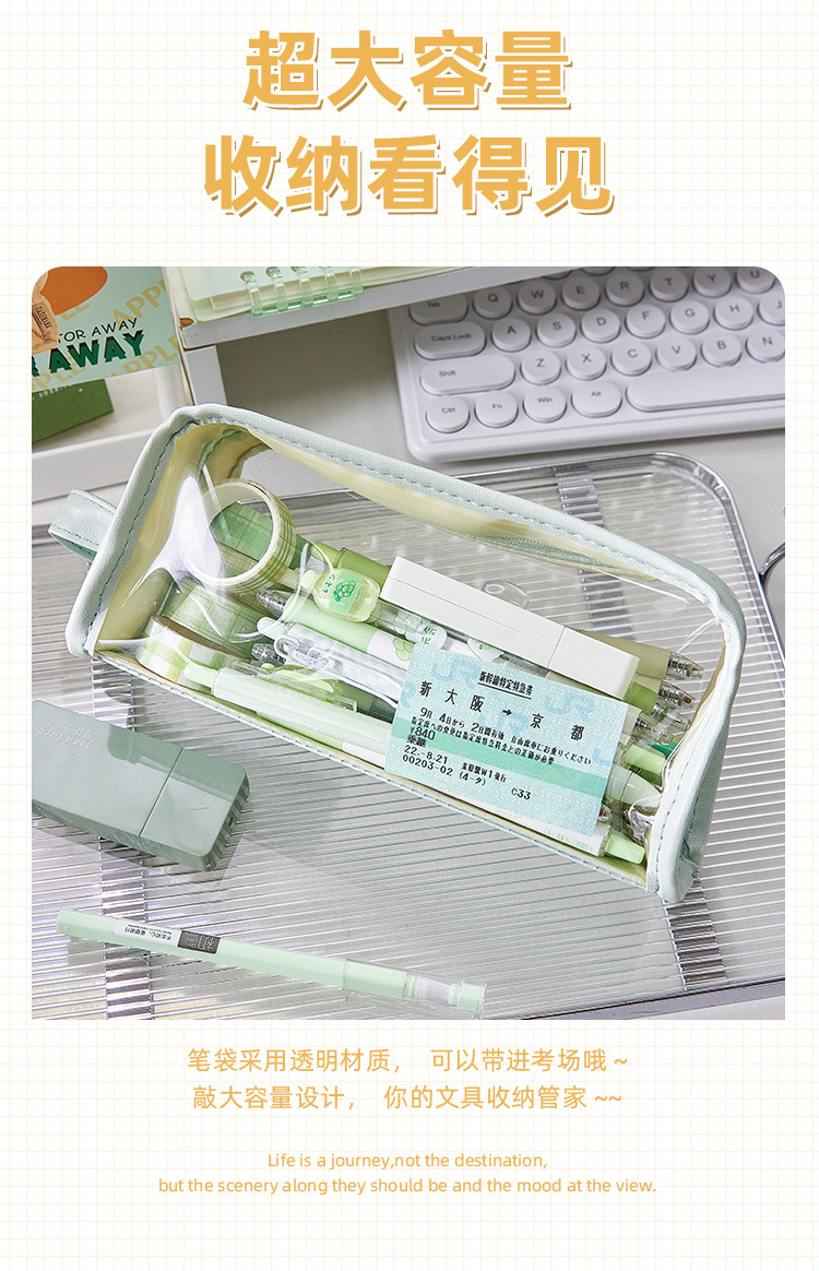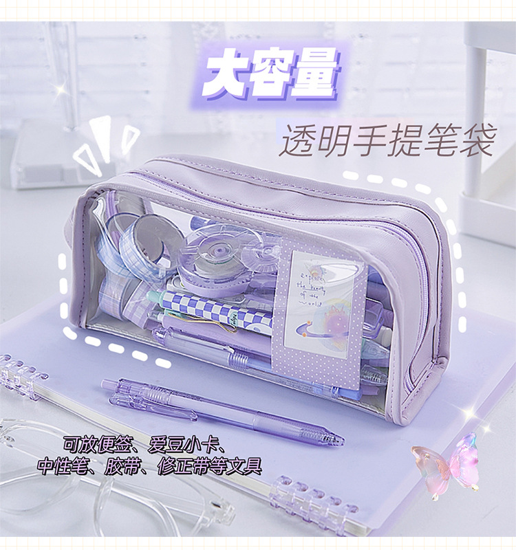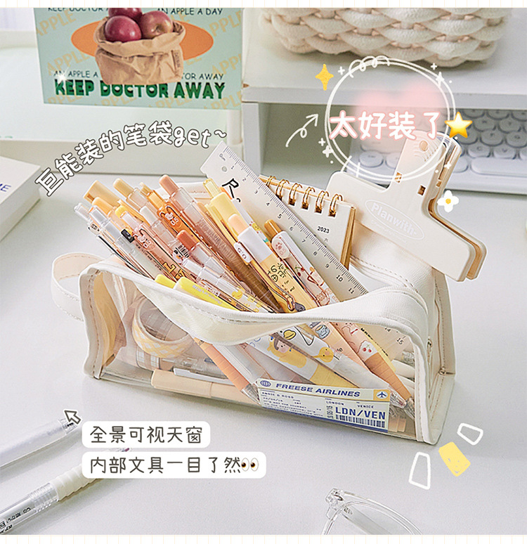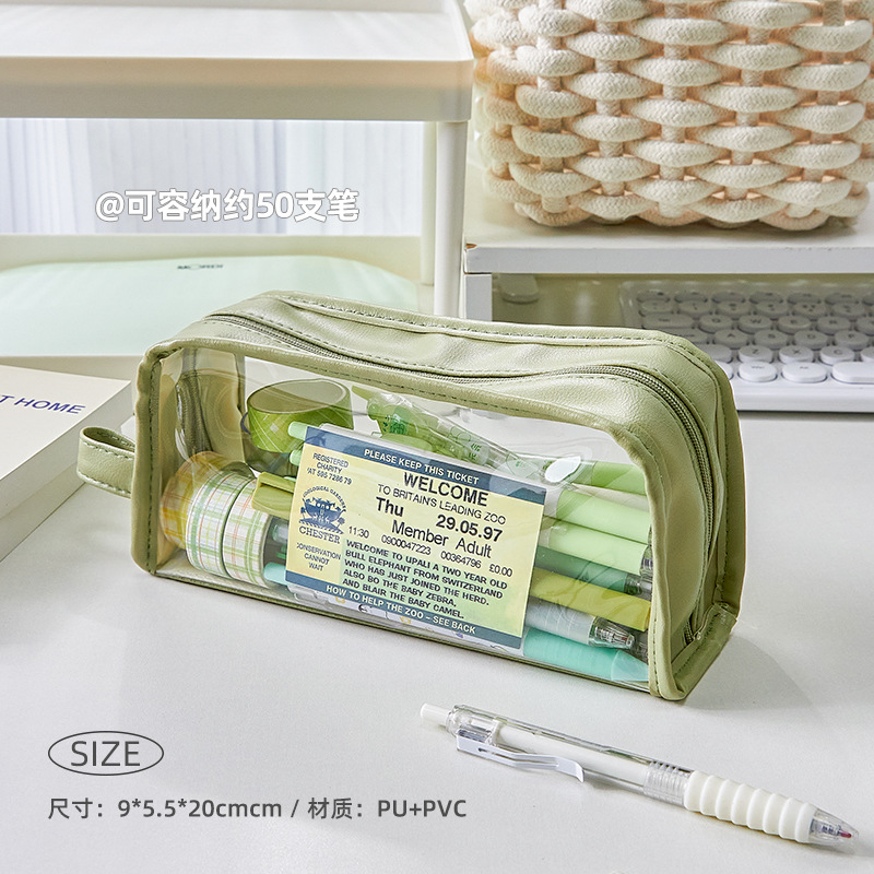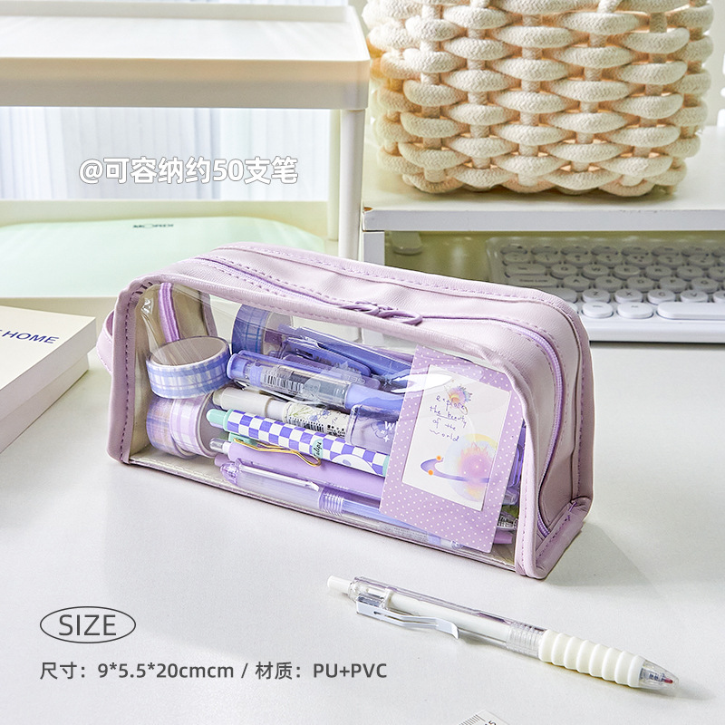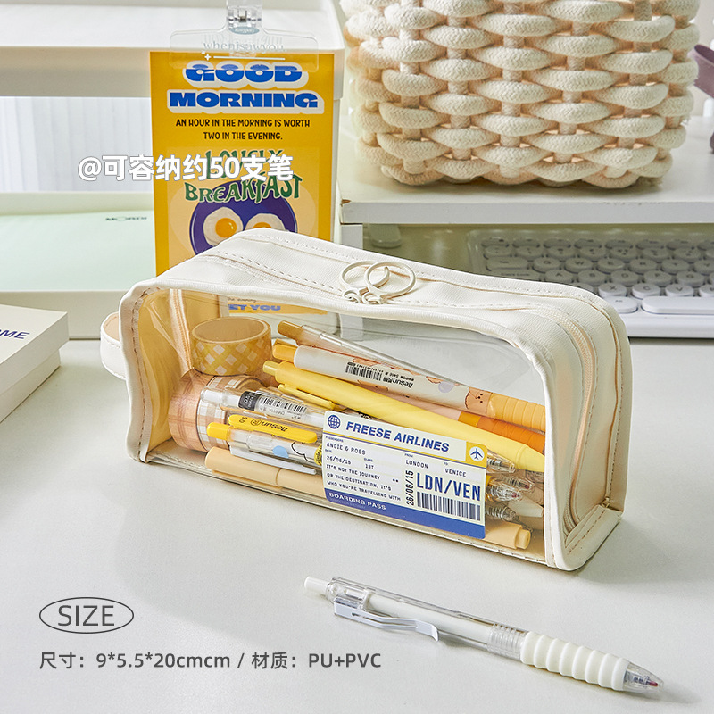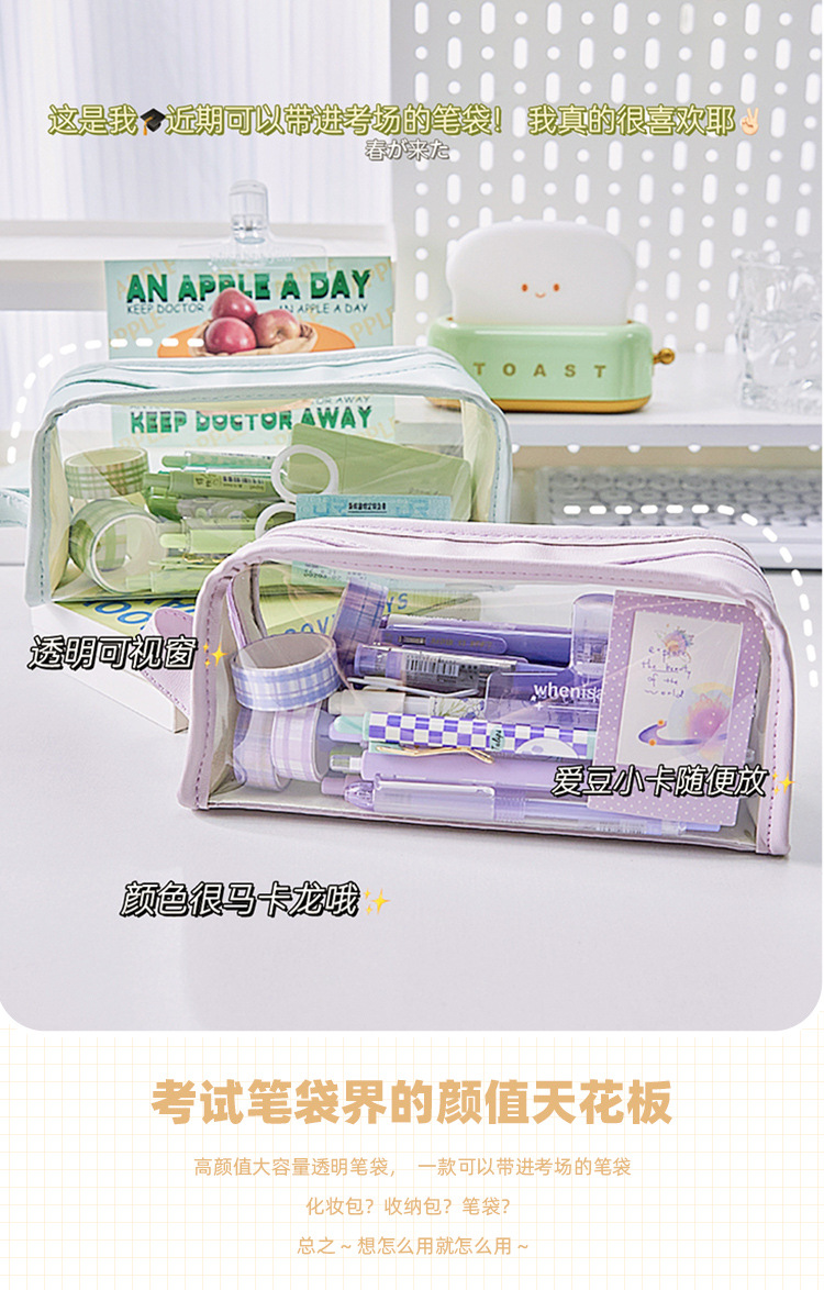 大容量透明笔袋女孩初中生铅笔盒小学生文具盒高颜值简约