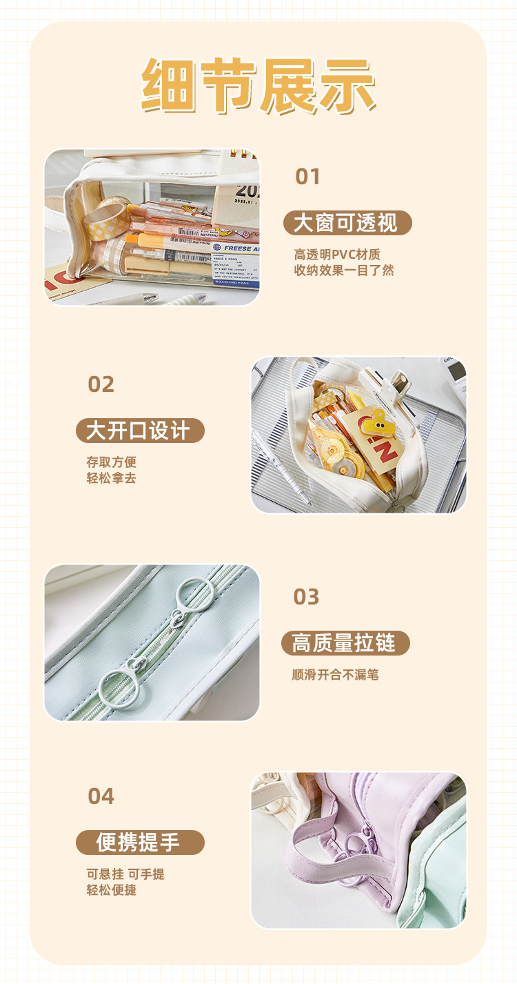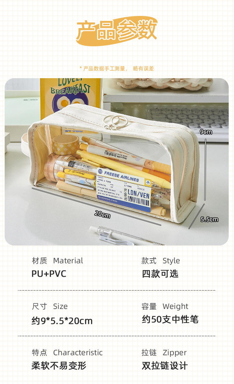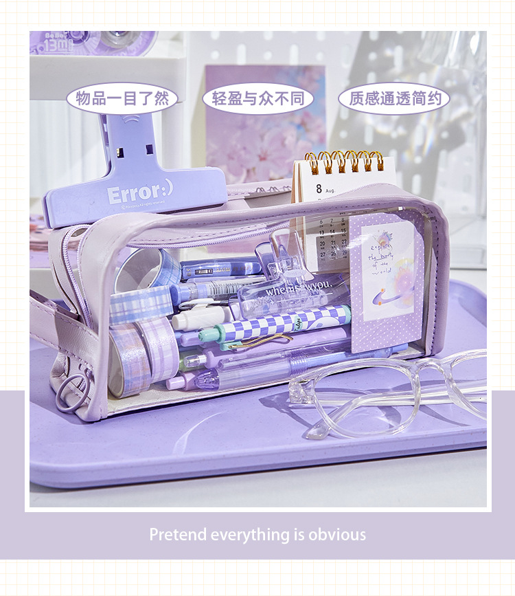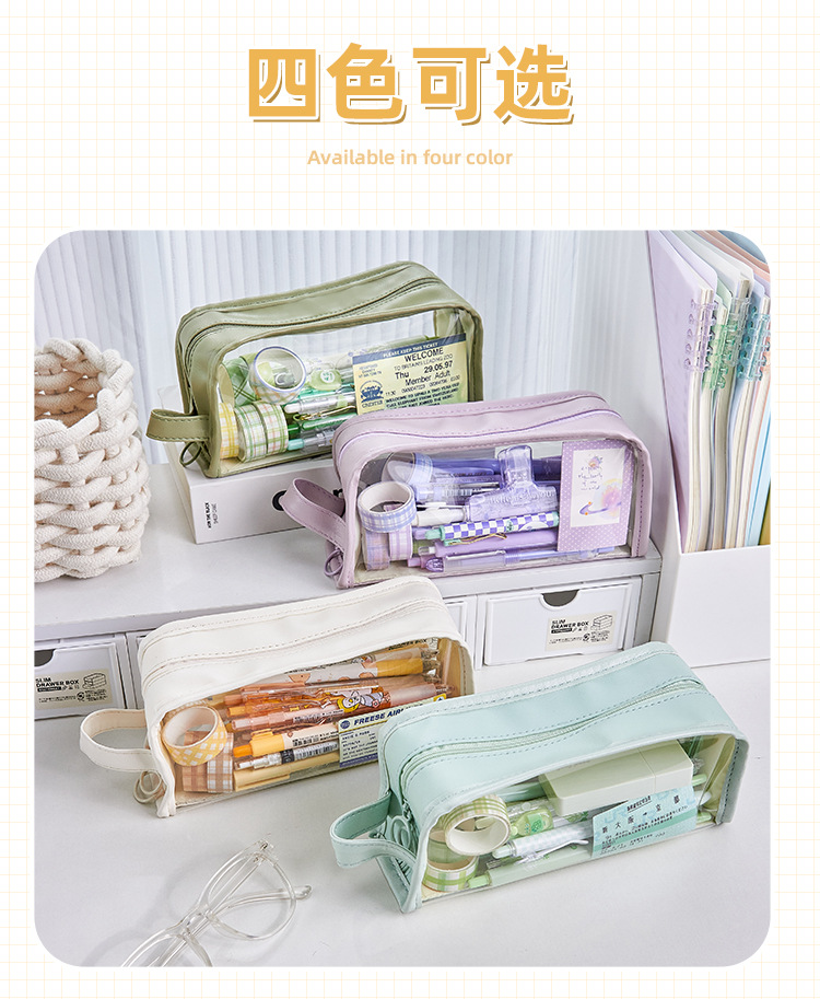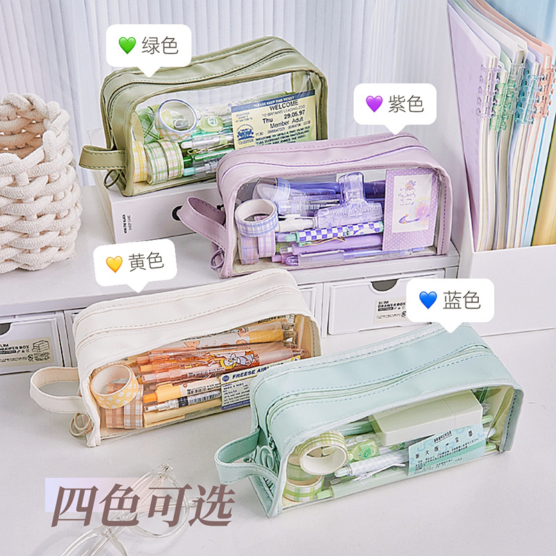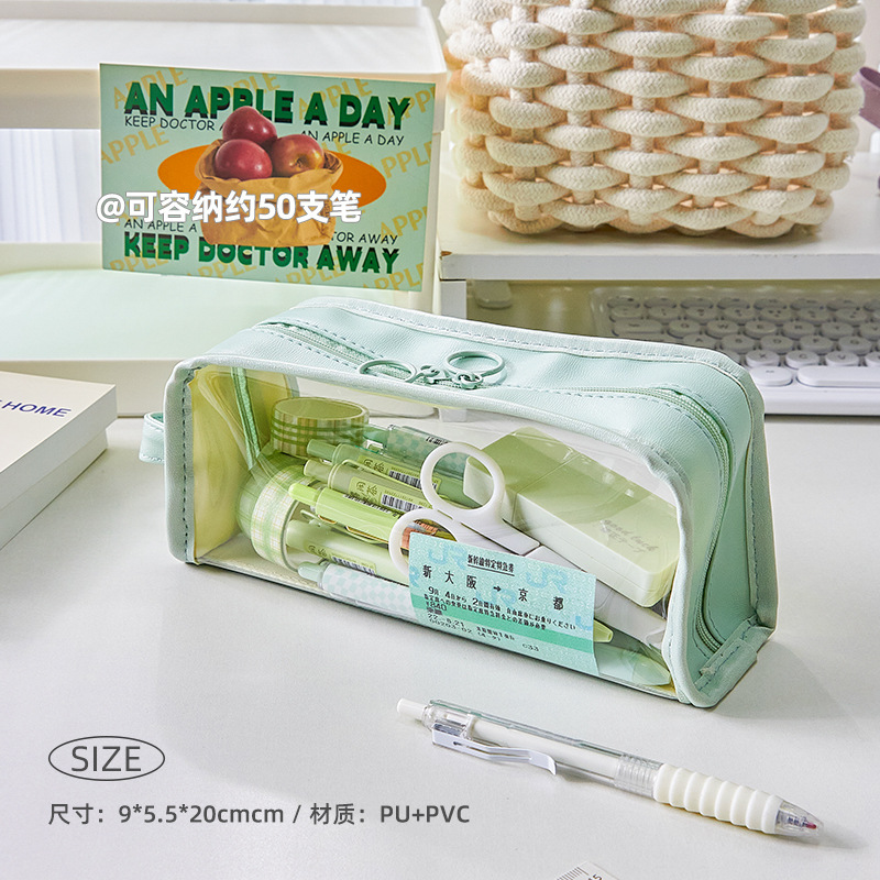 大容量透明笔袋女孩初中生铅笔盒小学生文具盒高颜值简约