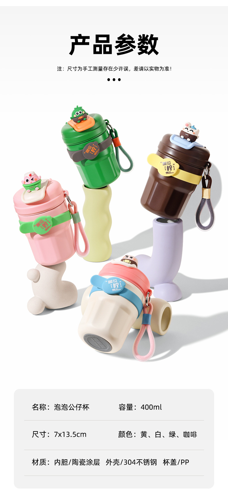 | 颜色 | 泡泡公仔杯一代-草莓粉, 泡泡公仔杯一代-翡翠绿, 泡泡公仔杯一代-奶油白, 泡泡公仔杯一代-咖啡黑 |