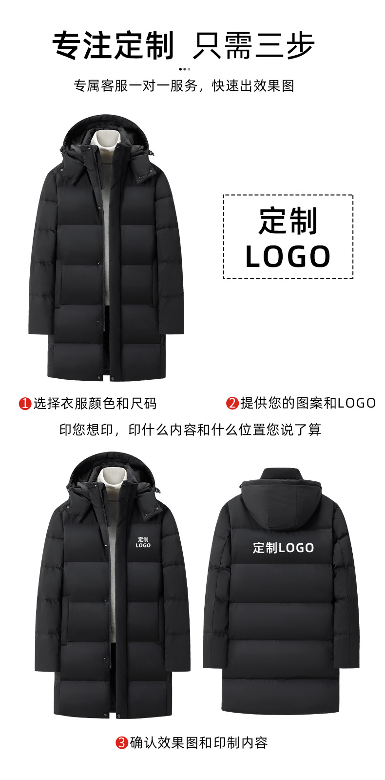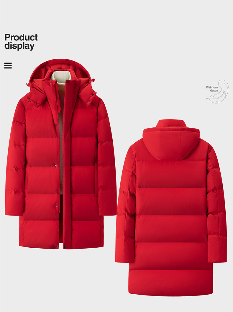 - 羽绒服工作服定 制印logo字医护团队白鸭绒石墨烯中长款银行工服
