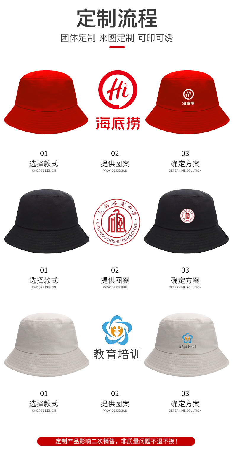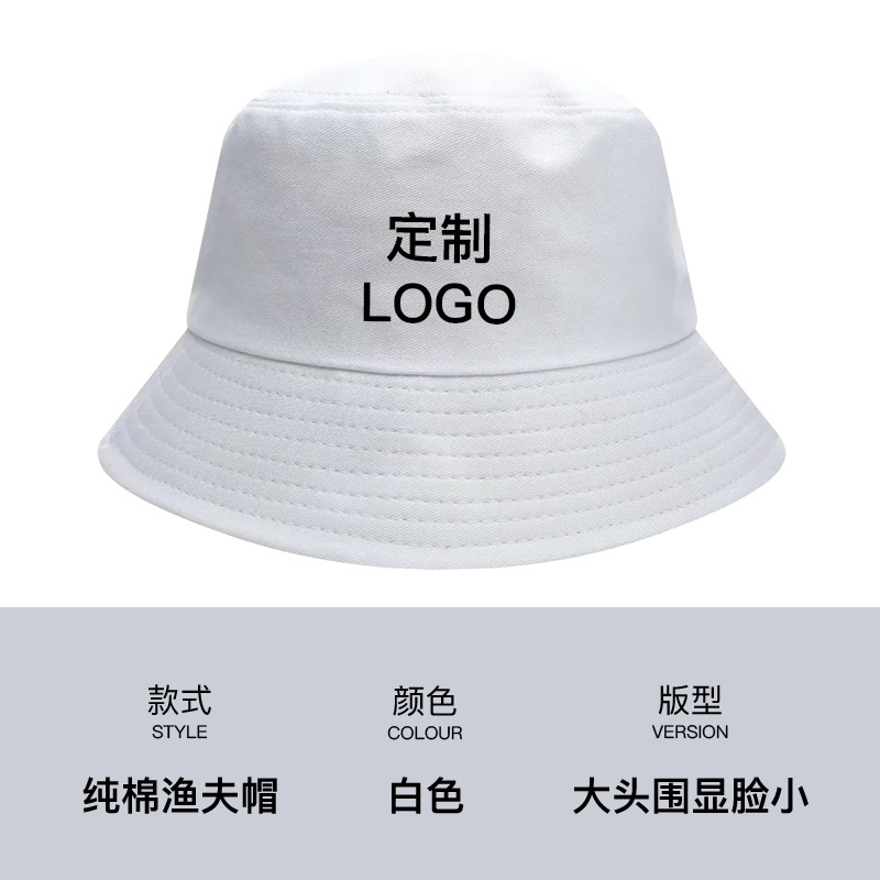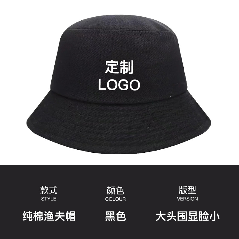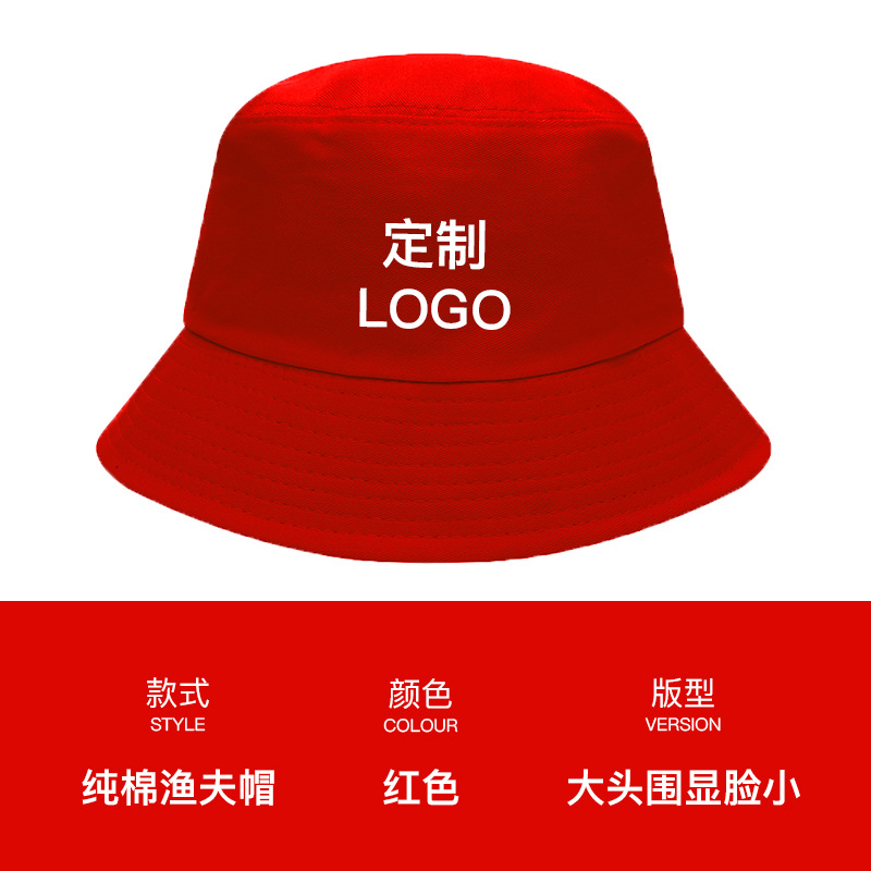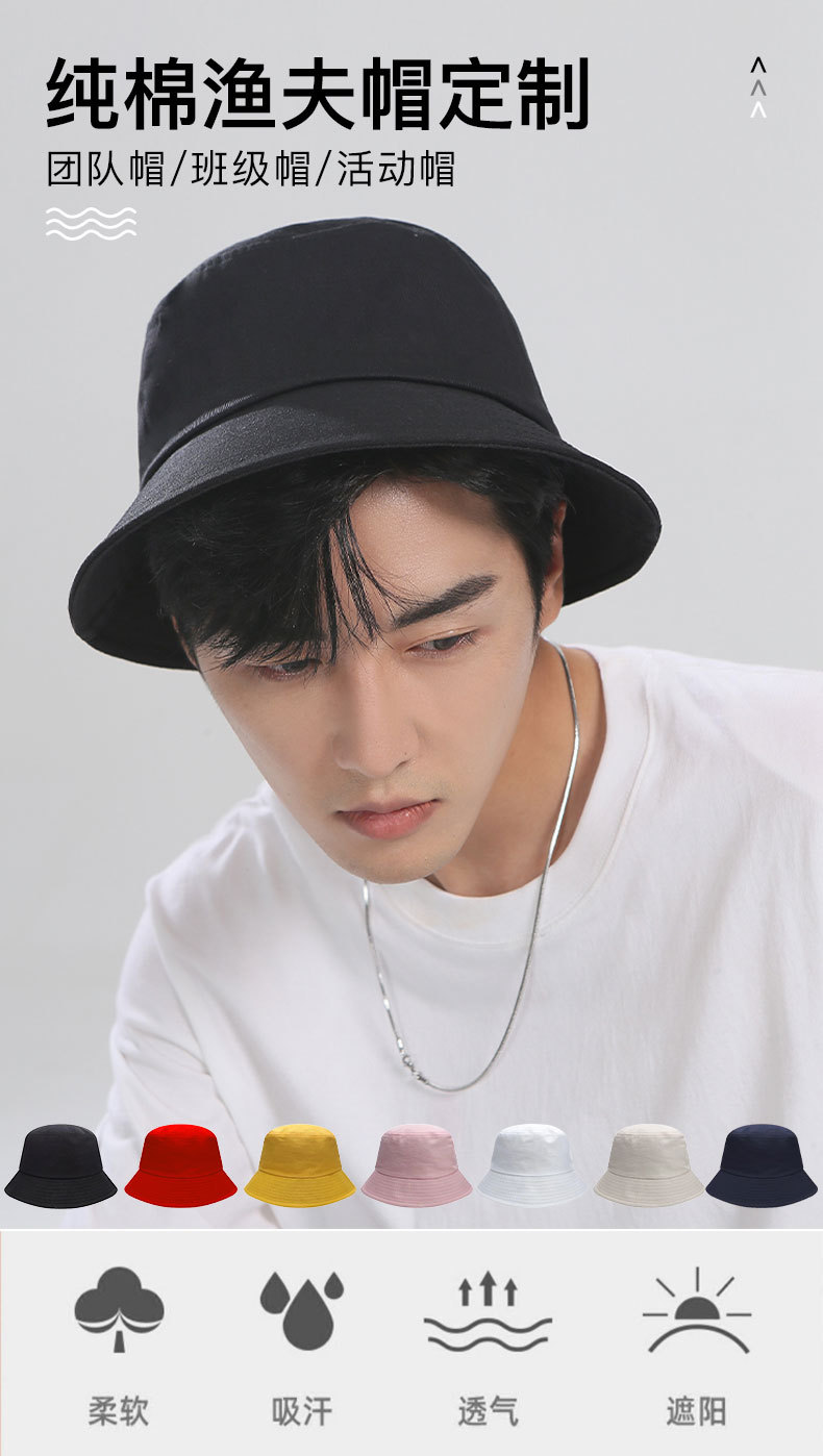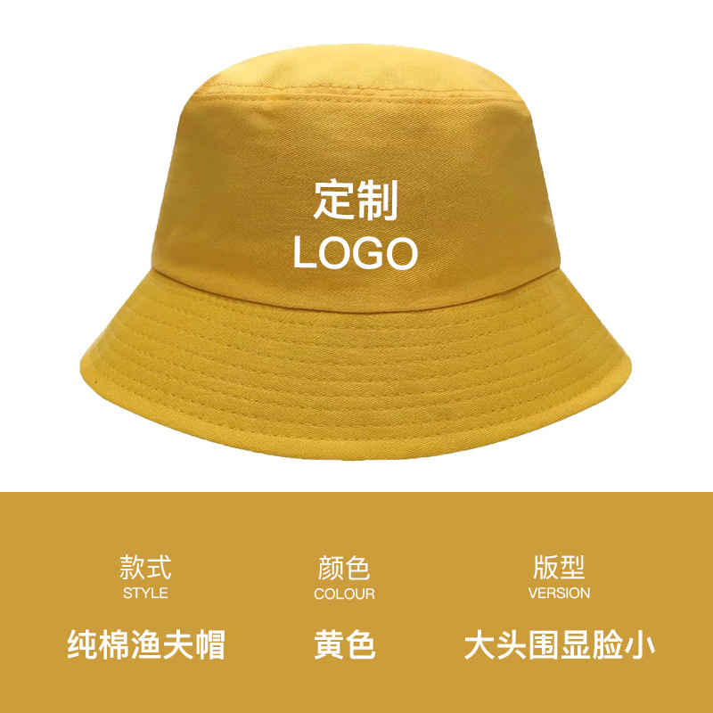 - 渔夫帽定制印logo字刺绣广告宣传男女休闲纯棉户外活动防晒盆帽子