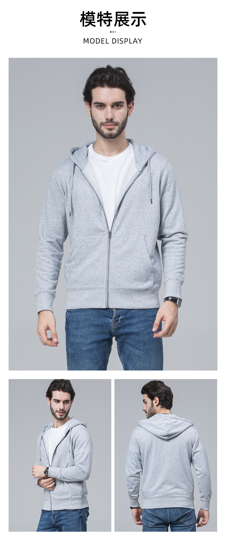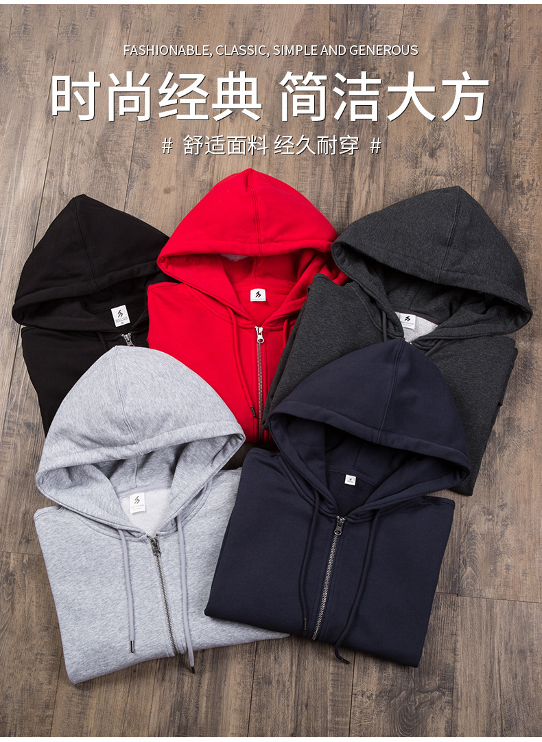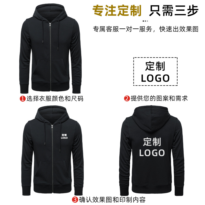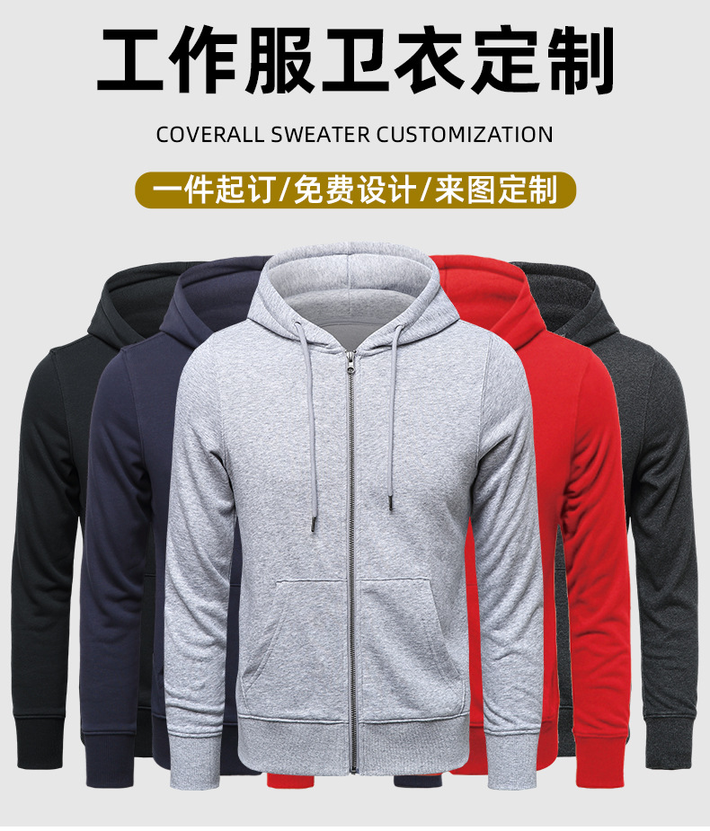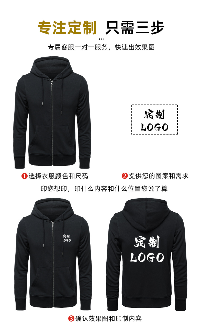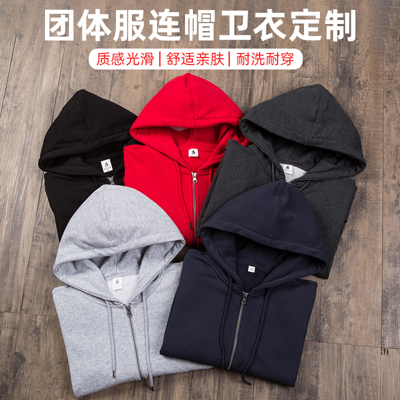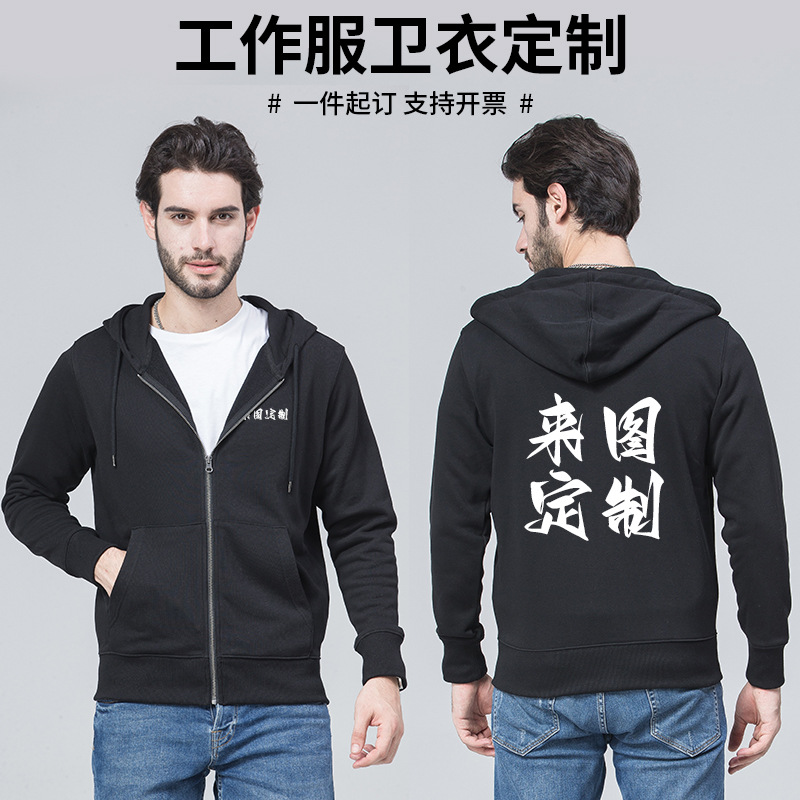 - 连帽卫衣定 制印logo 秋冬拉链广告工作服外套长袖工衣活动团体服