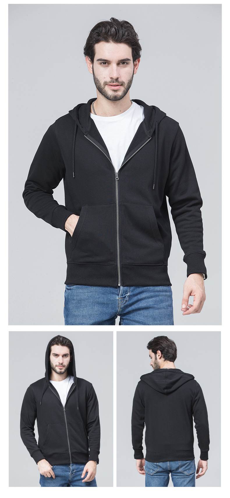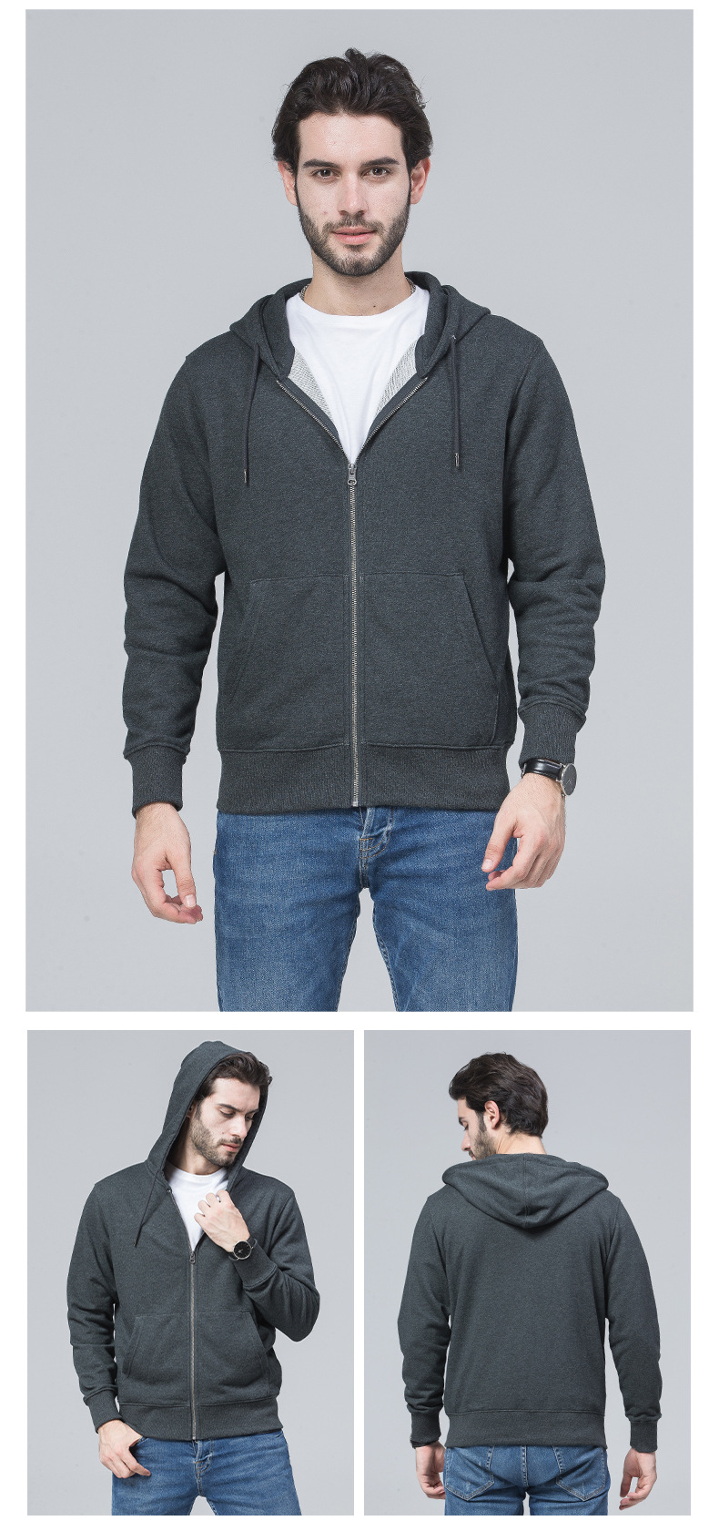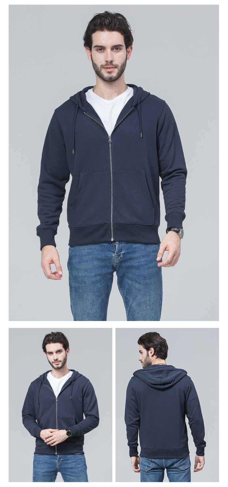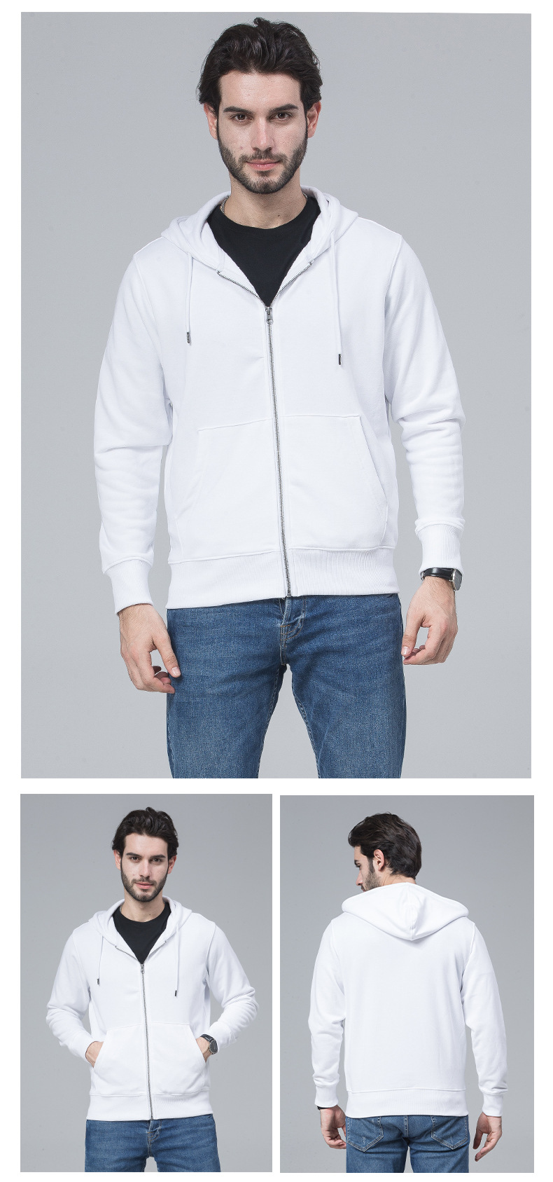 - 连帽卫衣定 制印logo 秋冬拉链广告工作服外套长袖工衣活动团体服