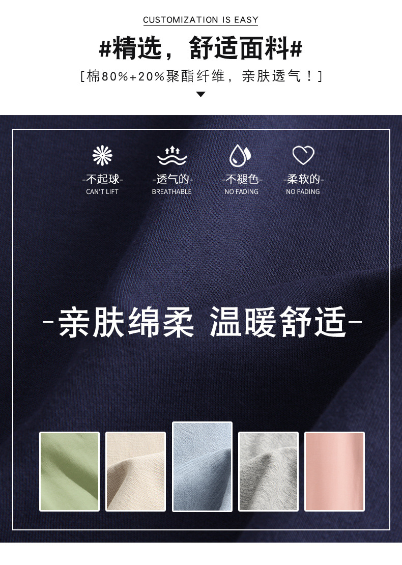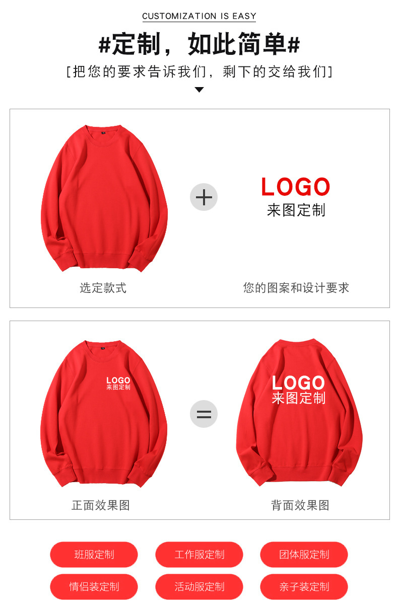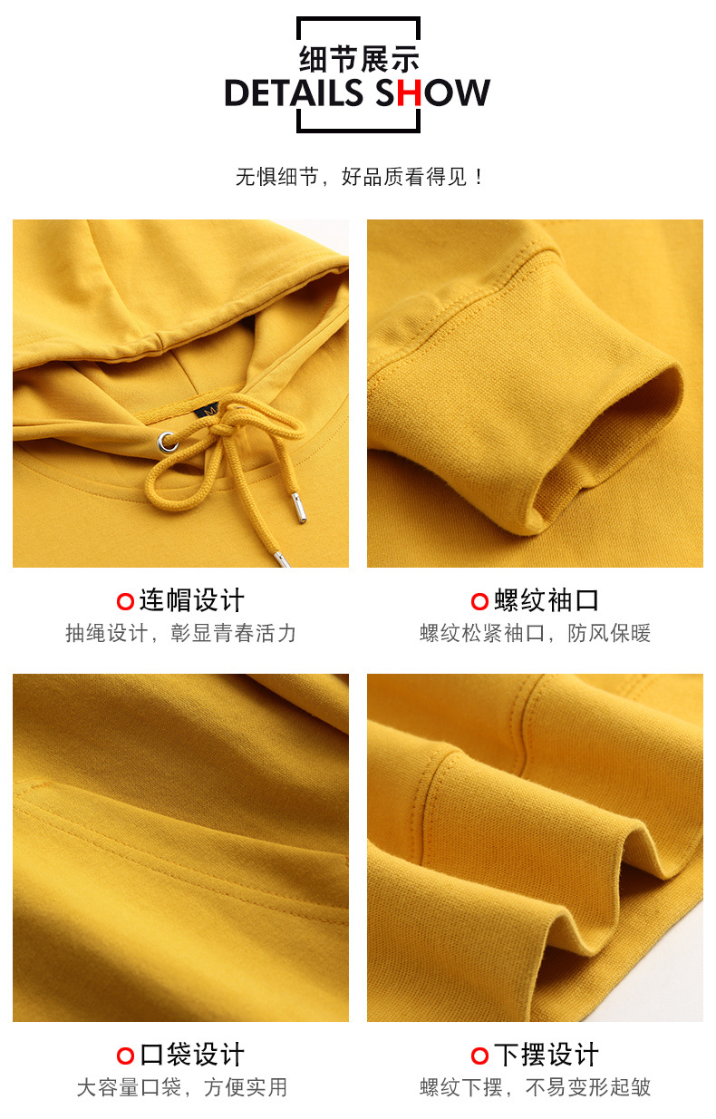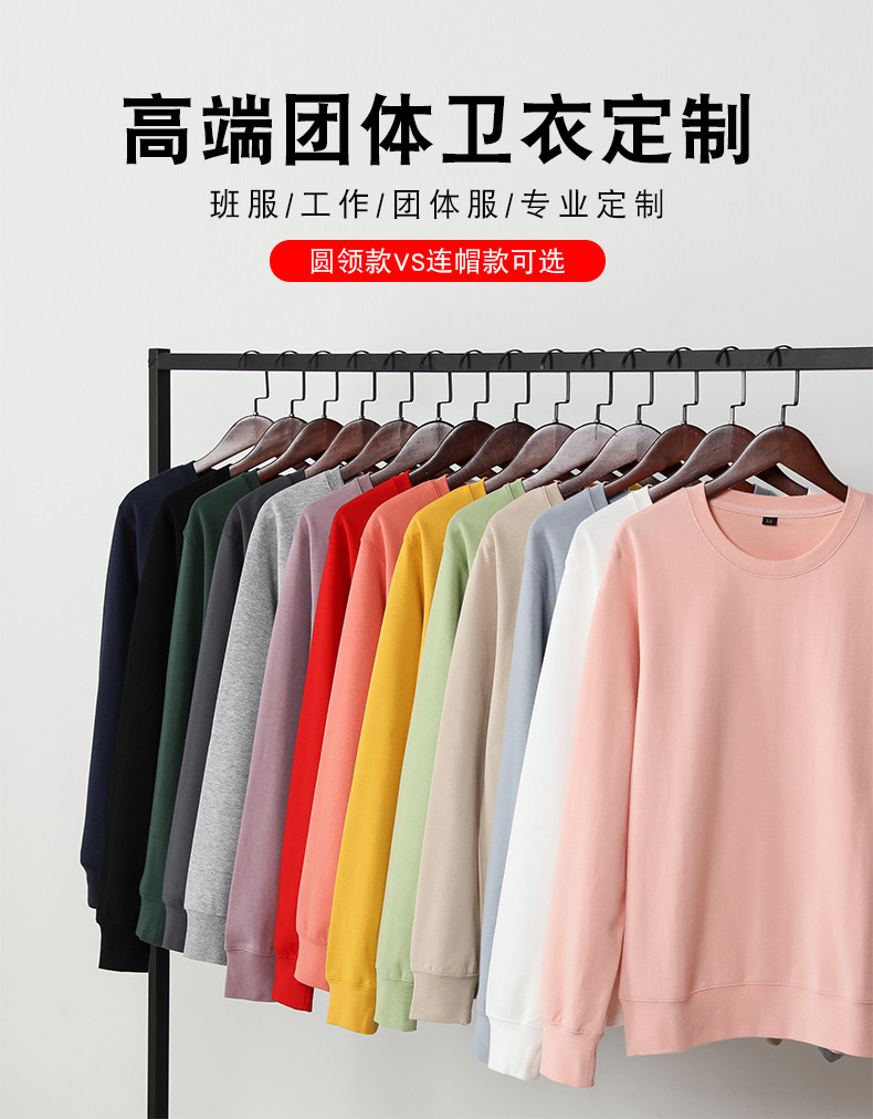 秋冬连帽卫衣 韩版印logo个性加绒团体定制 圆领纯色宽松长袖