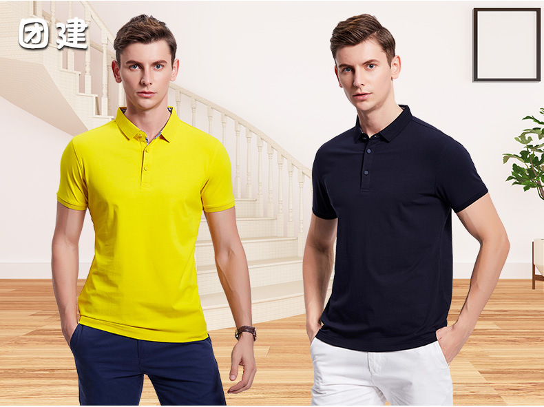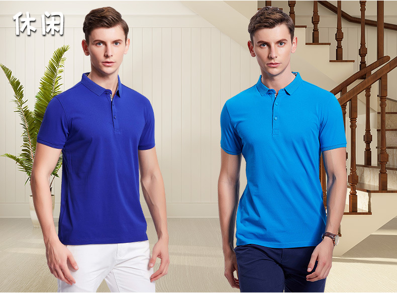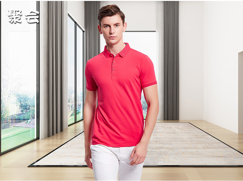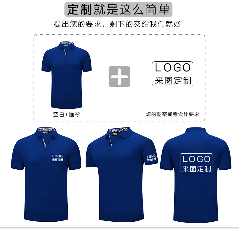 - 夏季翻领男士商务polo衫纯色团队短袖工作服印logo字来图印绣