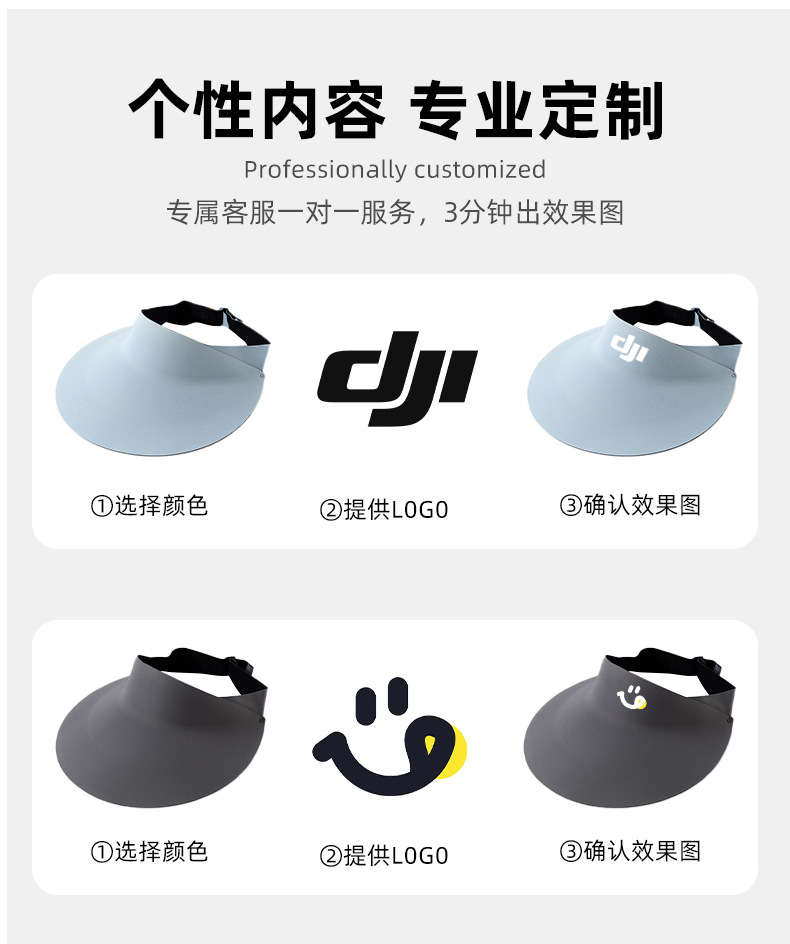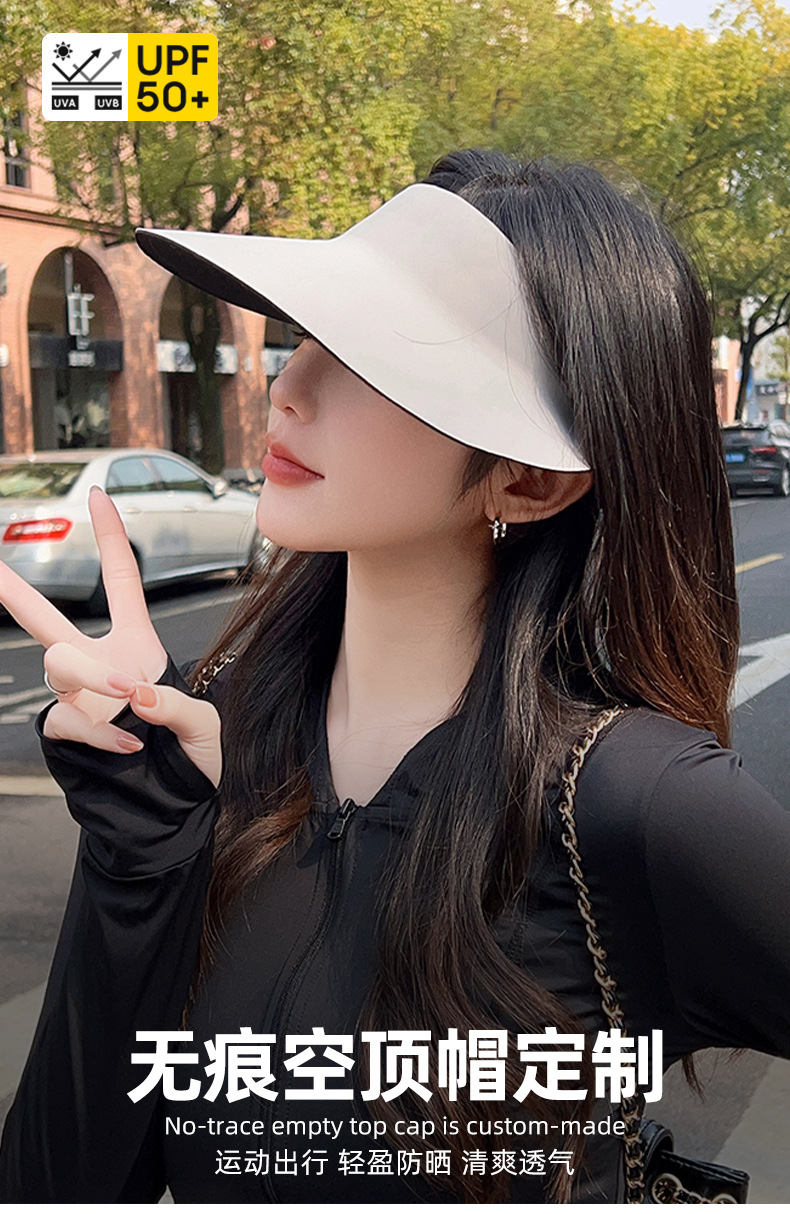 - 无痕防晒帽定制印logo夏季冰丝遮阳防紫外线可折叠活动空顶太阳帽