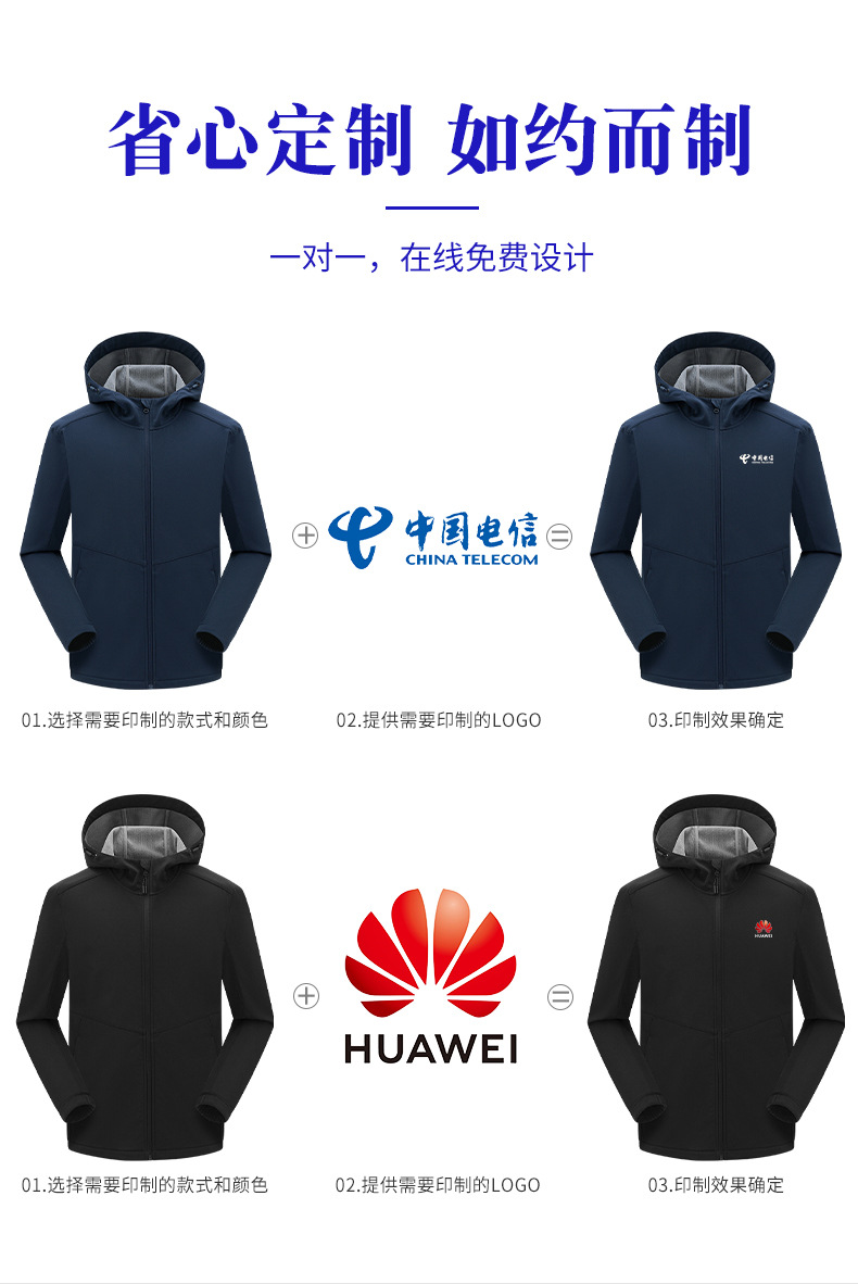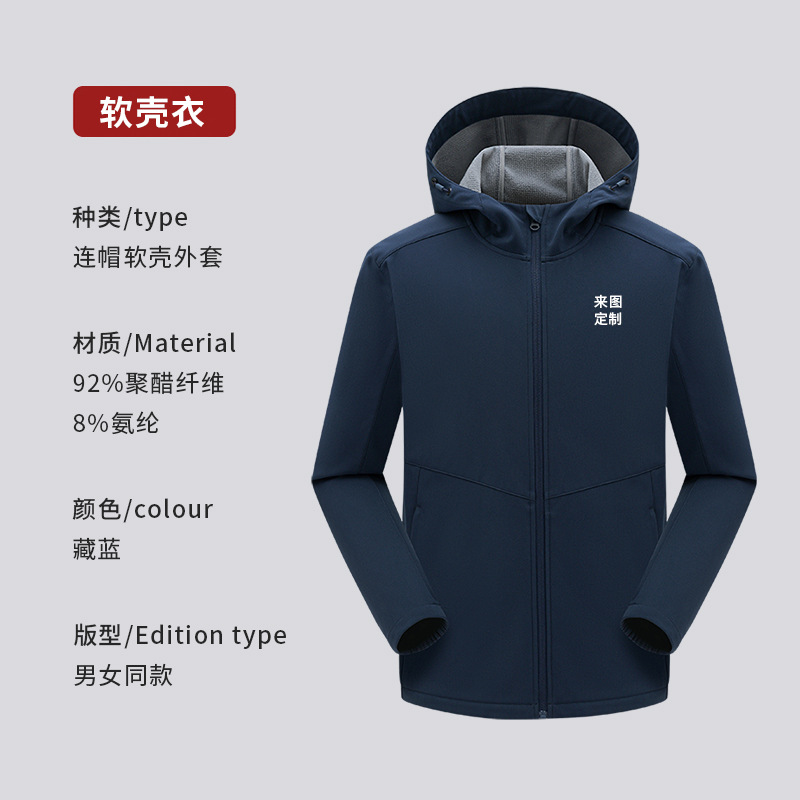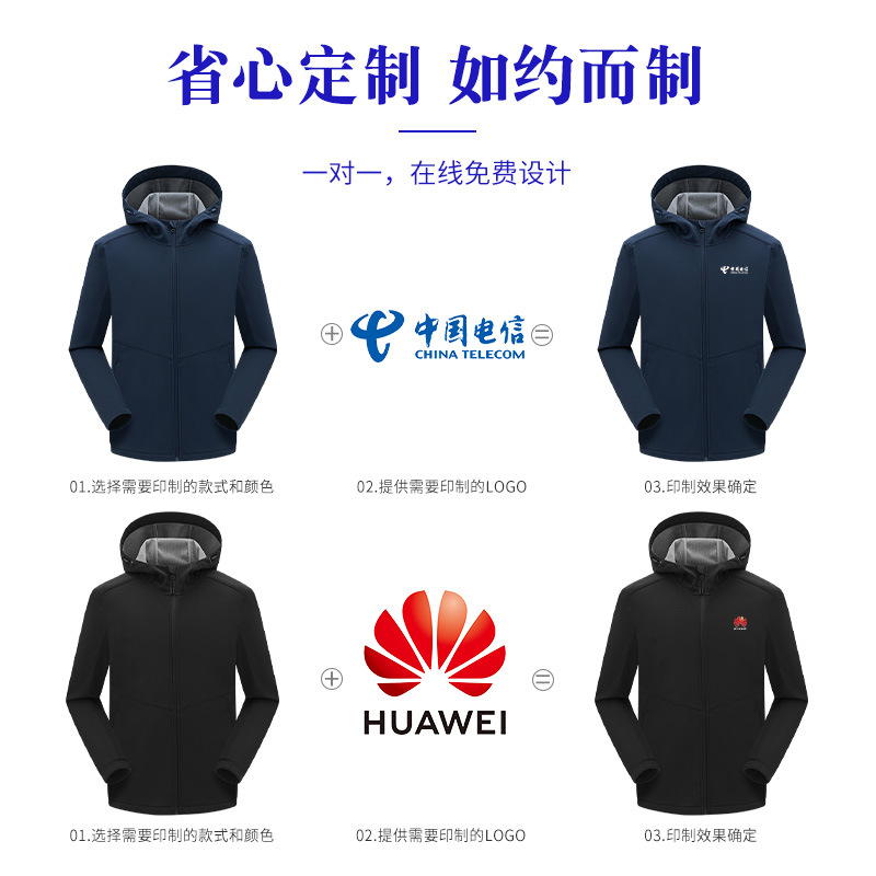 加绒冲锋衣定制印logo一体式冬季加厚保暖连帽外套企业团队工作服