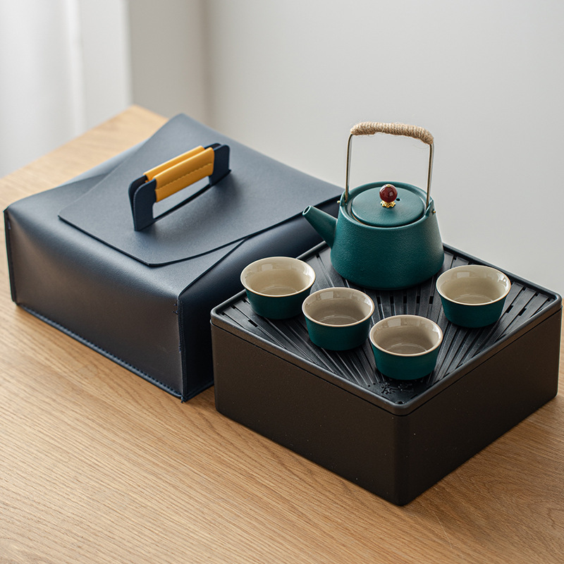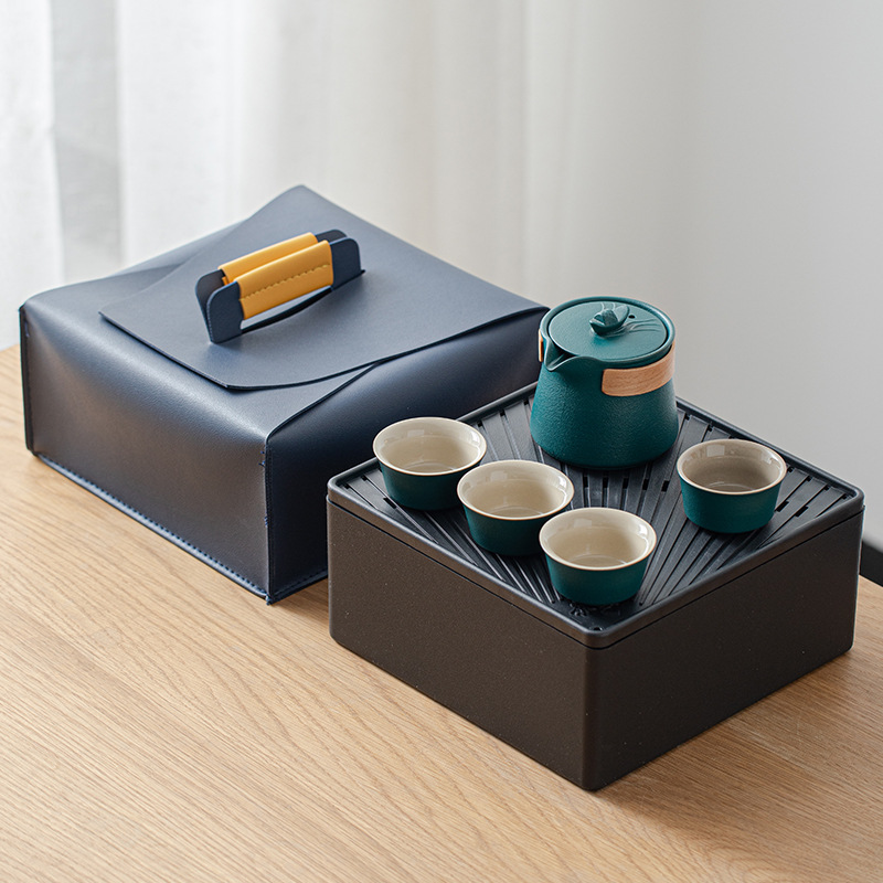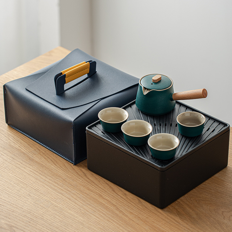 ¥66.25陶瓷旅行茶具套装便携式一壶两杯户外泡茶随身收纳快客杯