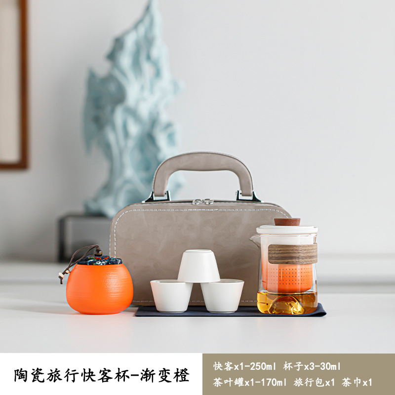 陶瓷旅行便携式功夫茶具礼盒小套装户外泡茶壶快客杯节日赠送商务定制