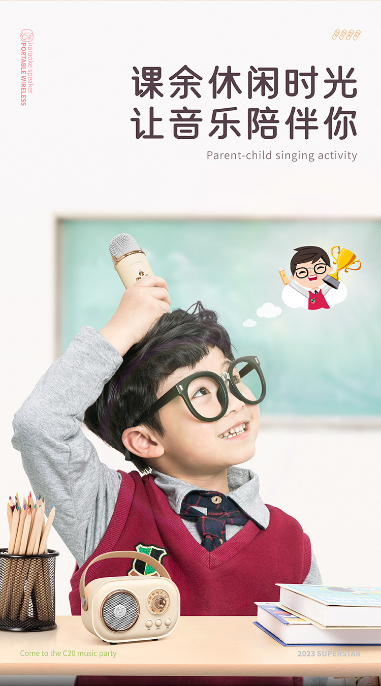 蓝牙音响户外带麦话筒家庭K歌音响低音炮中秋礼物定制便携小音箱