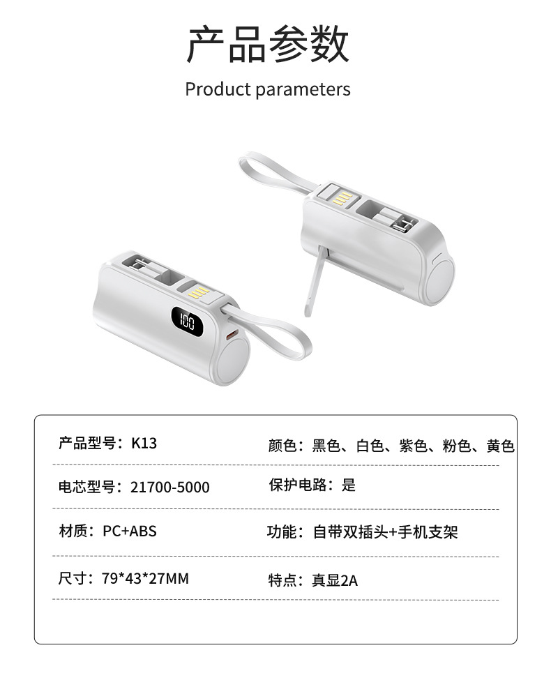 | 电源容量 | 3000毫安, 5000毫安 |